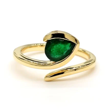 0.91ct pear-cut emerald ring set in 18K solid gold. A timeless cocktail piece, IGI certified, VS1 clarity, BIS hallmarked. Bold, elegant, and refined.