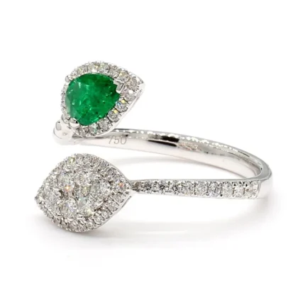 18K Solid Gold Pear Emerald & Lab Grown Diamond 0.77 Carat Cocktail Ring