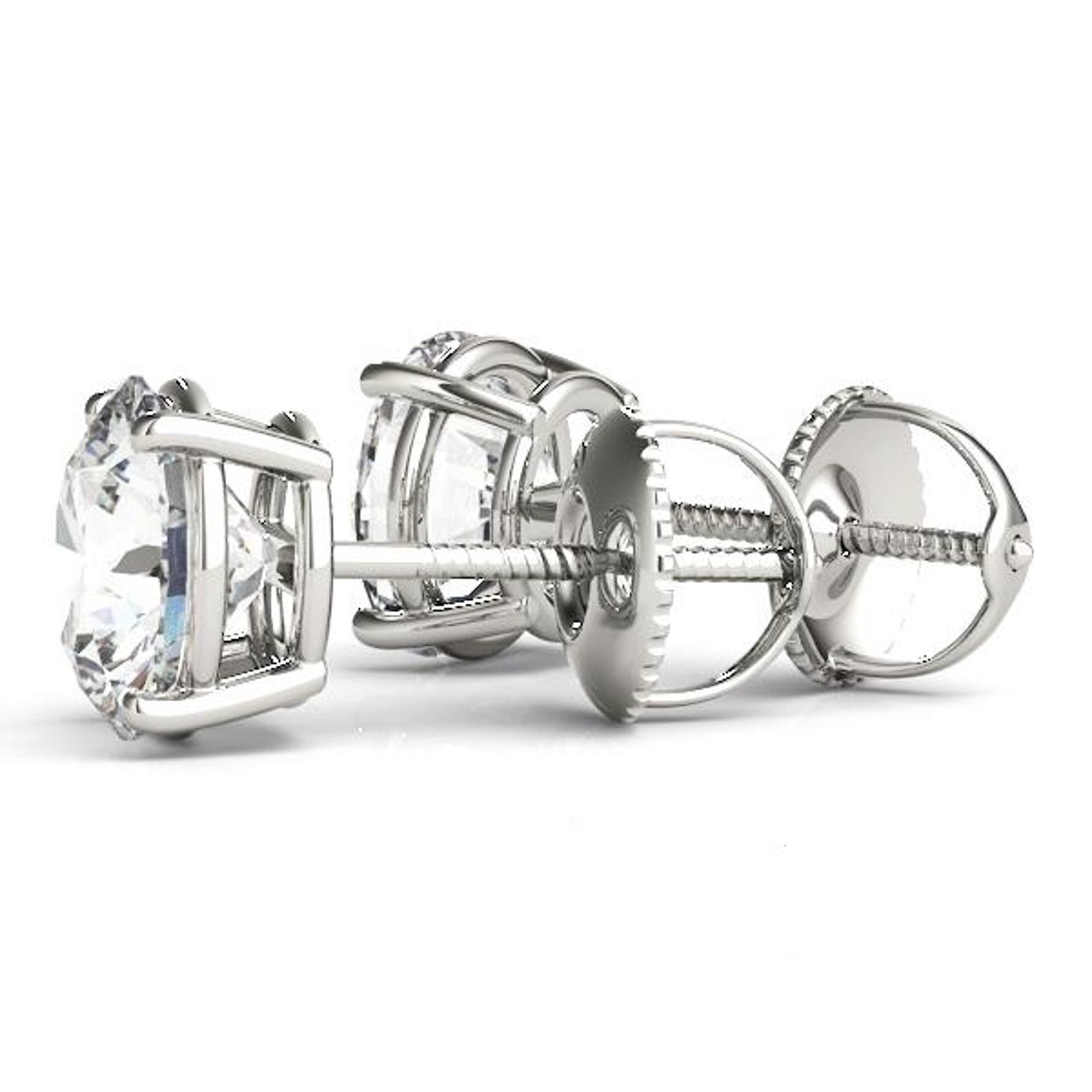 18K Solid Gold 1.00 CTW Natural Diamond Solitaire Stud Earrings – April Birthstone