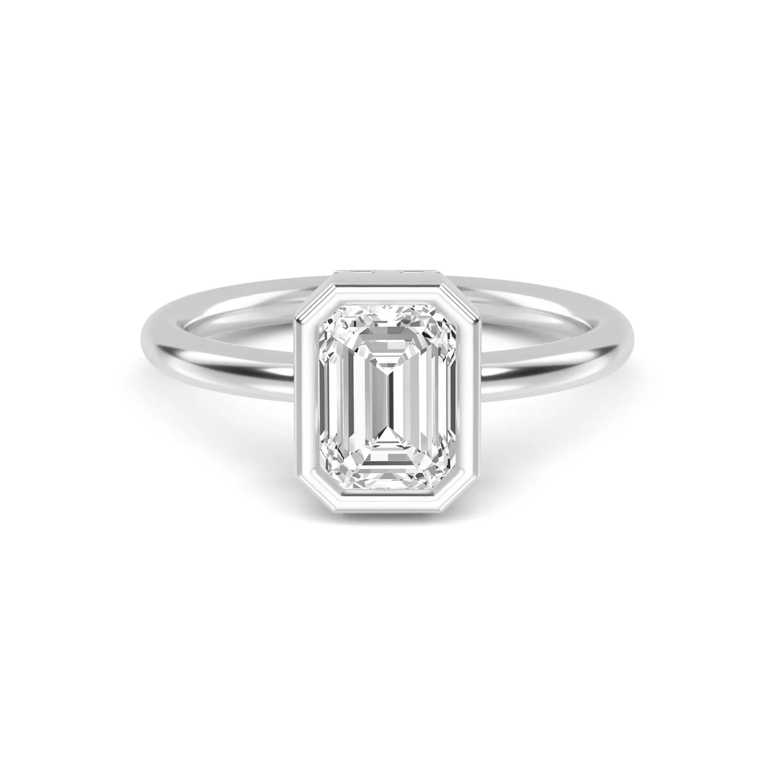 18K Solid Gold 1.30Ct Minimalist Bezel Set Emerald Cut Lab Grown Diamond Engagement Ring