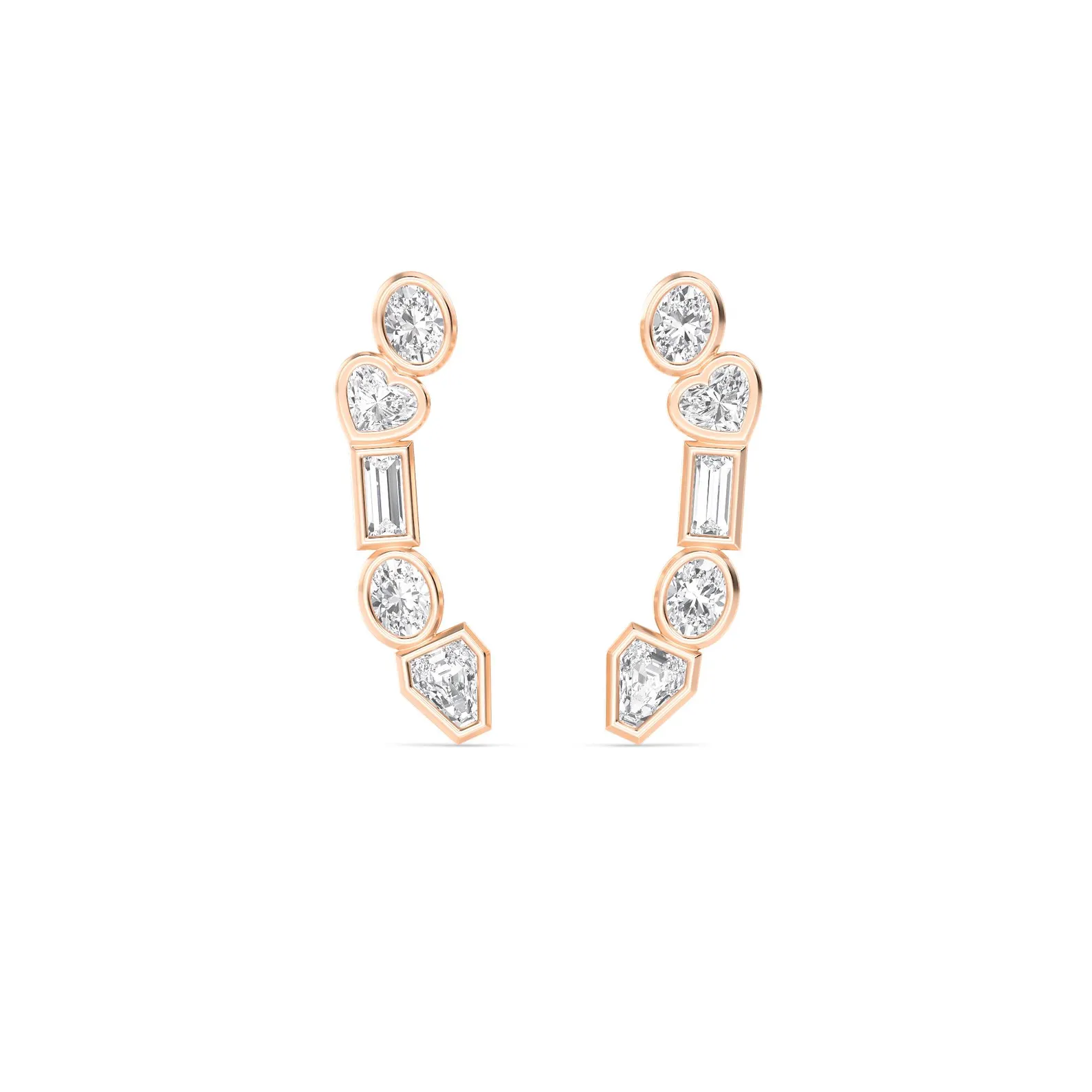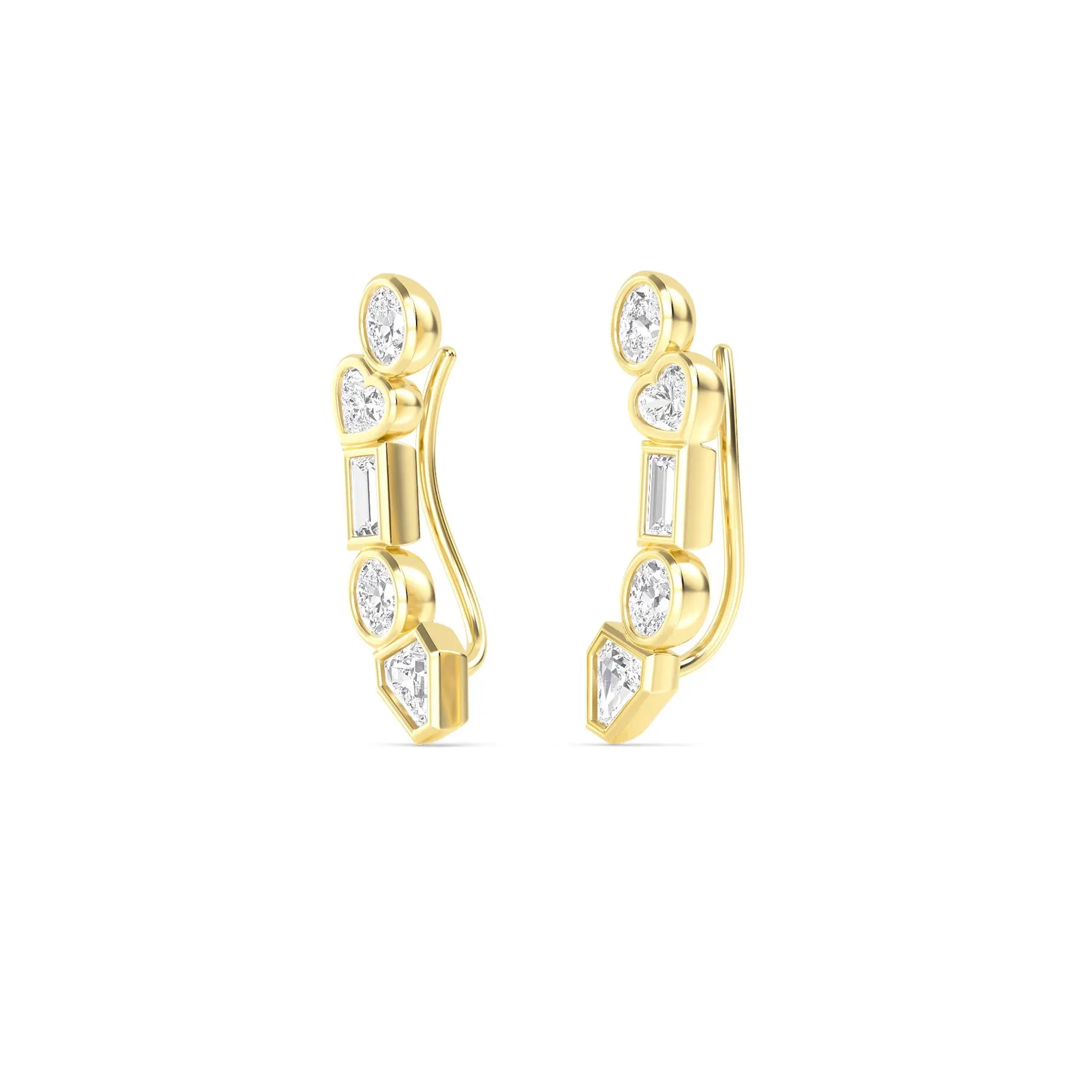 Modern 1.41 CT multi-shape diamond ear climbers in 18K solid gold. Bezel set, GIA certified & BIS hallmarked. Elegant and stylish design.
