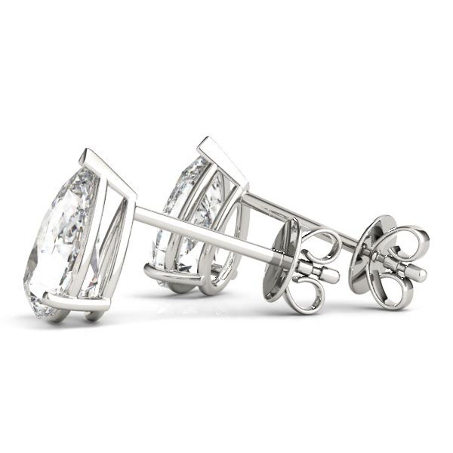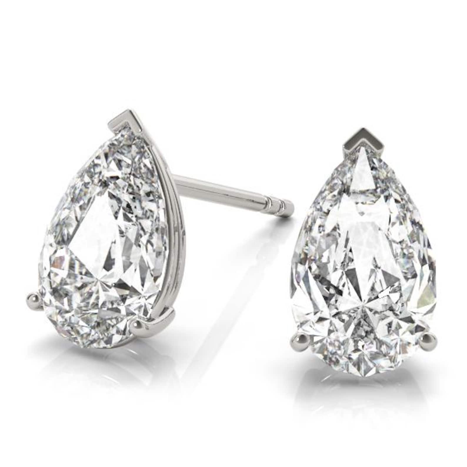 1.50ct pear-cut diamond studs set in 18K solid gold. Featuring GIA-certified natural diamonds of E color and VS1 clarity in a secure three-prong setting.
