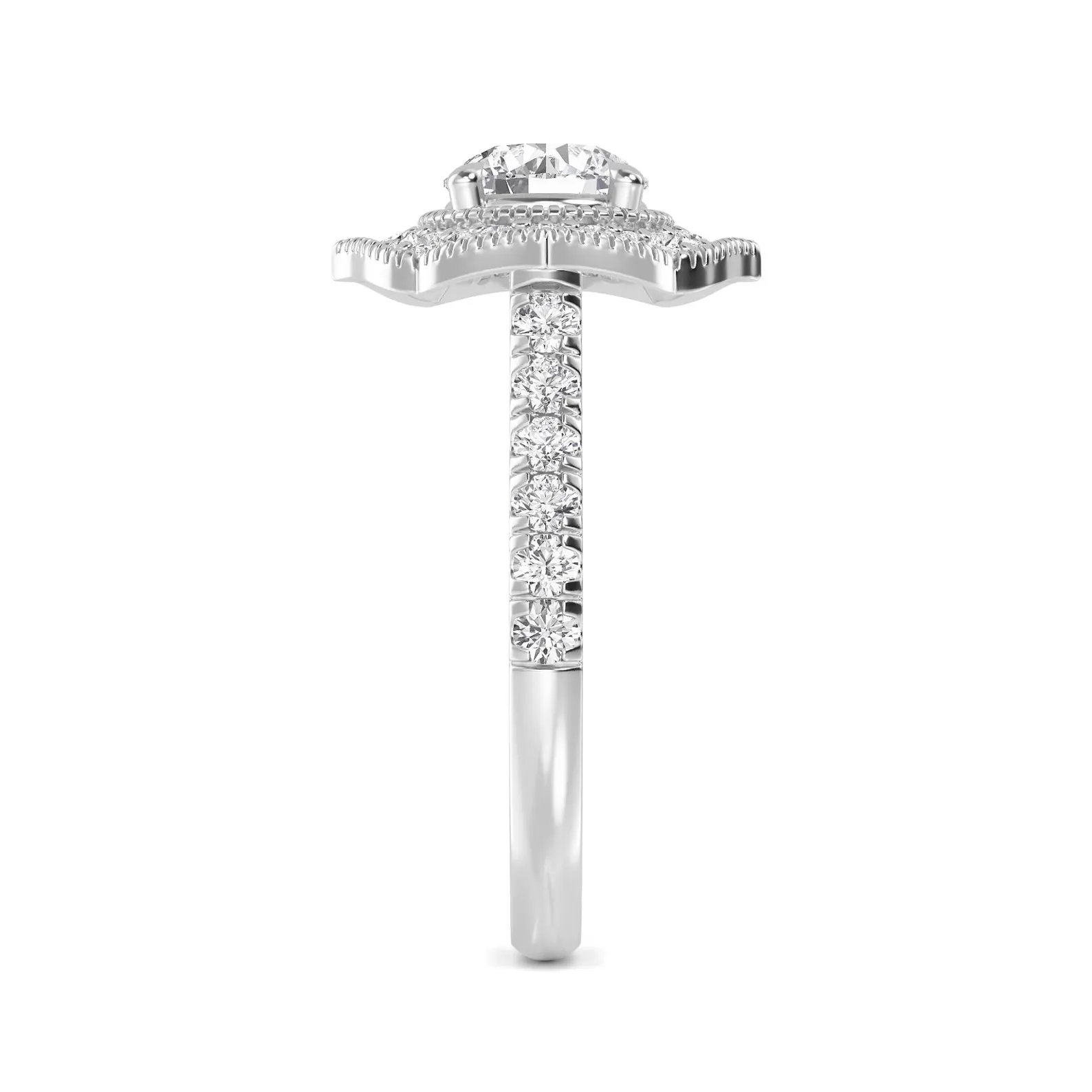 - Side Stones: Round Diamonds