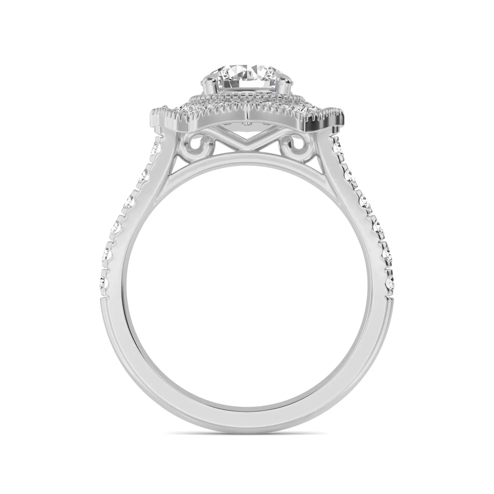 The halo design enhances the diamond’s presence, giving the ring a larger, more captivating appearance. Perfect for engagements, anniversaries, or as a meaningful gift, this heirloom-worthy ring is designed to embody timeless romance and enduring elegance.