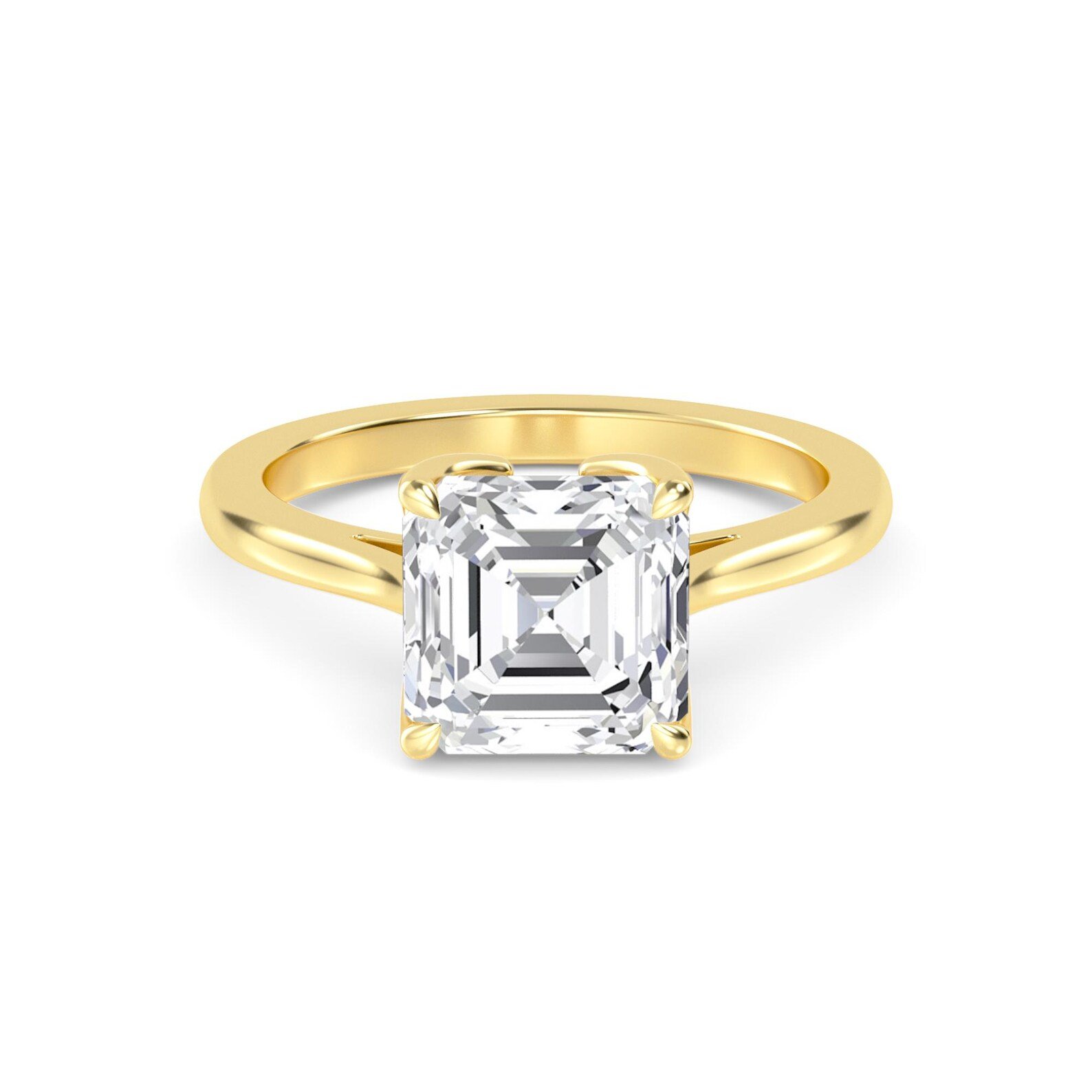 Secured in a timeless 4-prong solitaire setting, the Asscher diamond takes center stage, drawing all attention to its crisp geometry and refined sparkle. Crafted from rich 18K solid gold, this ring embodies sophistication and enduring craftsmanship, making it a perfect choice for those who appreciate understated luxury.