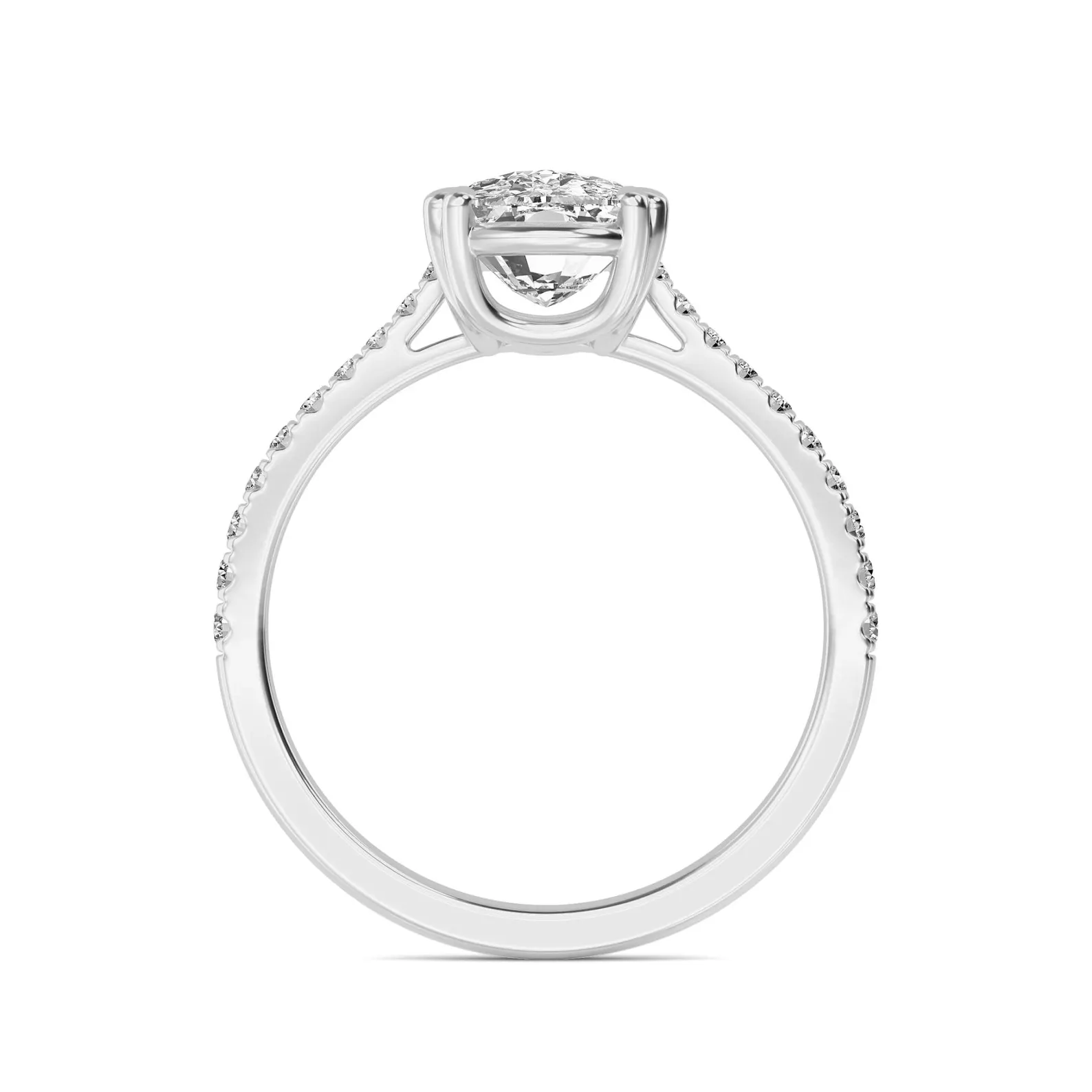 Celebrate everlasting love with this 18K solid gold cushion cut natural diamond engagement ring, designed to capture the essence of elegance and luxury. The centerpiece is a 1.51 carat cushion cut diamond, renowned for its romantic, soft edges and captivating sparkle. Enhancing its brilliance, a halo of round brilliant cut natural diamonds is set in a refined pave style, bringing the total diamond weight to 1.69 carats.