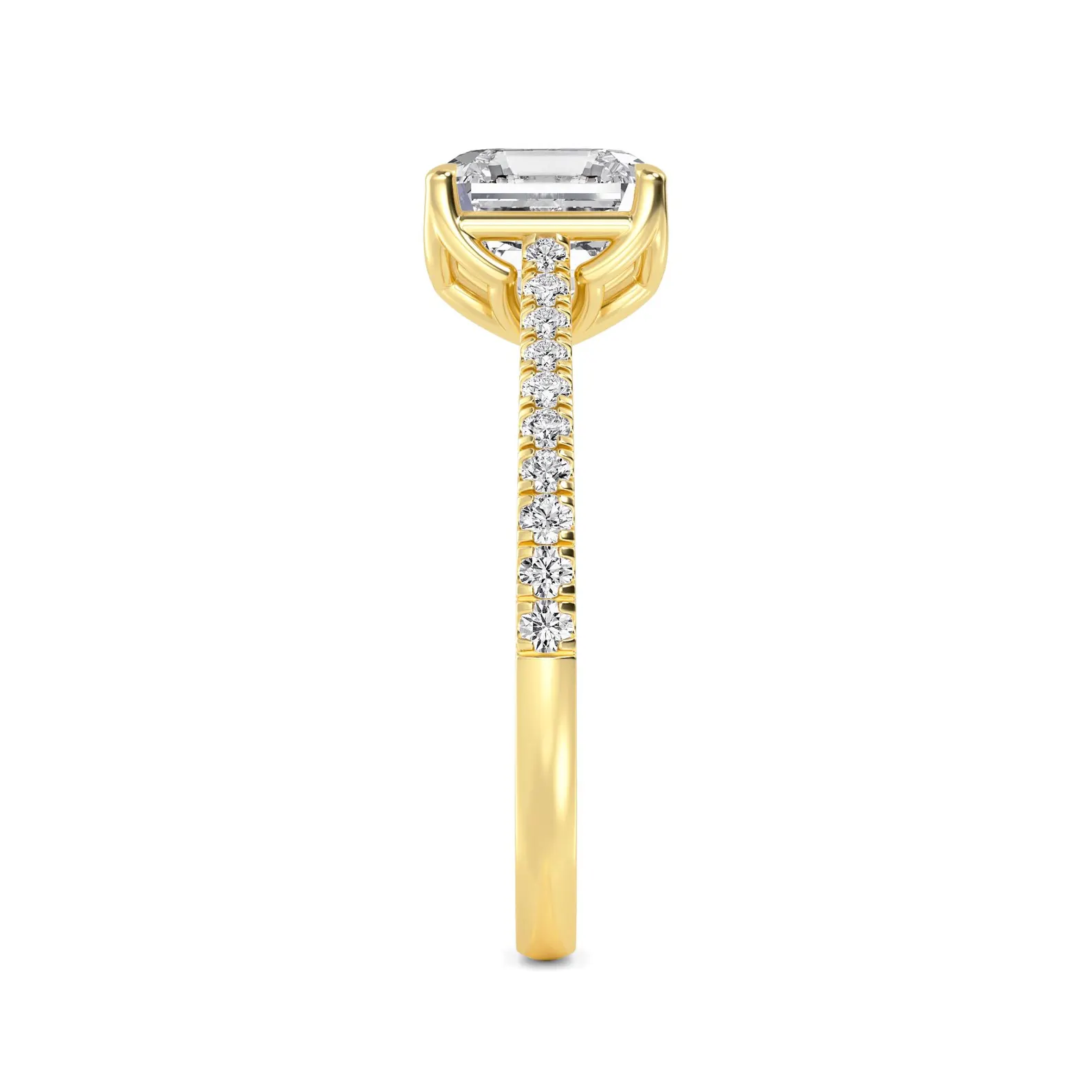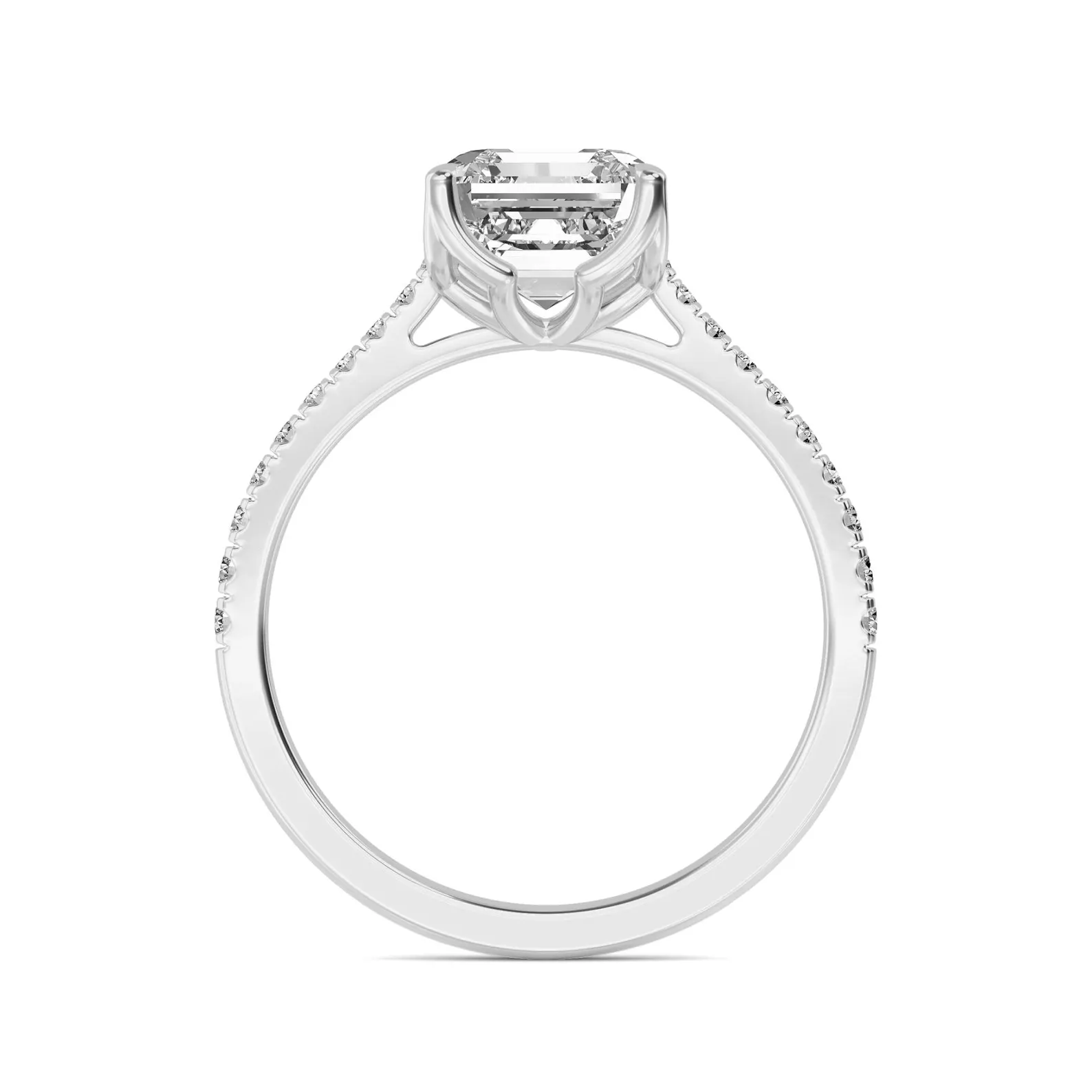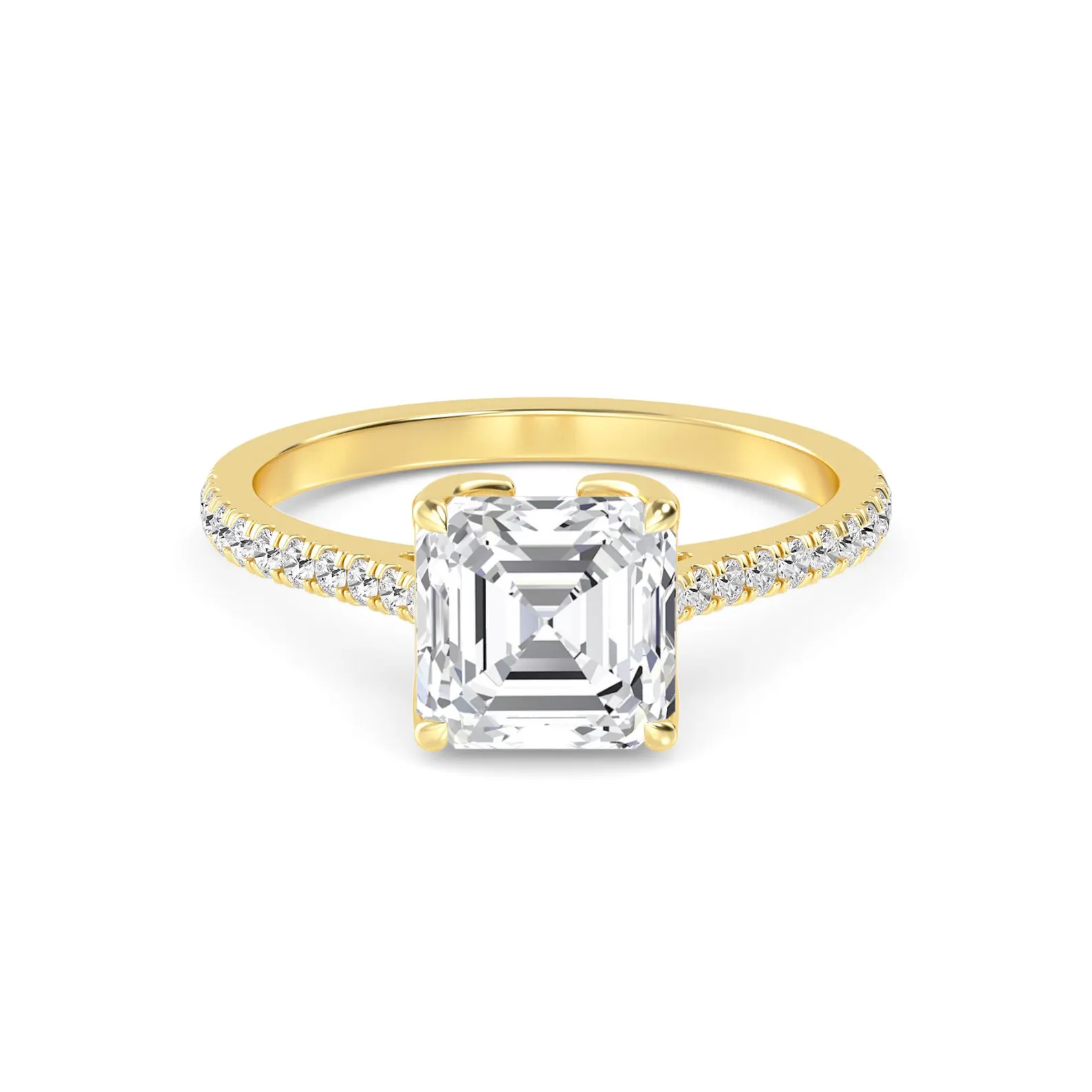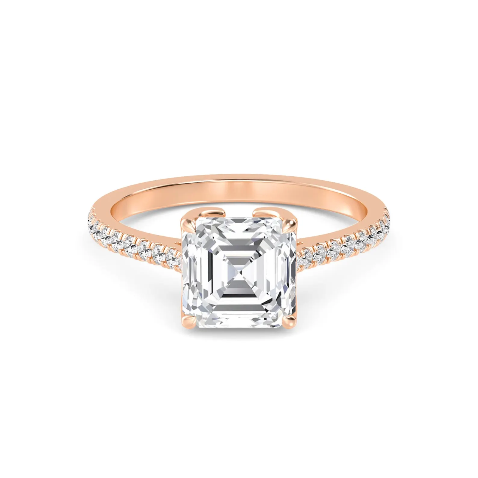 A 1.74ct Asscher cut solitaire pavé natural diamond engagement ring in 18K solid gold. GIA certified.