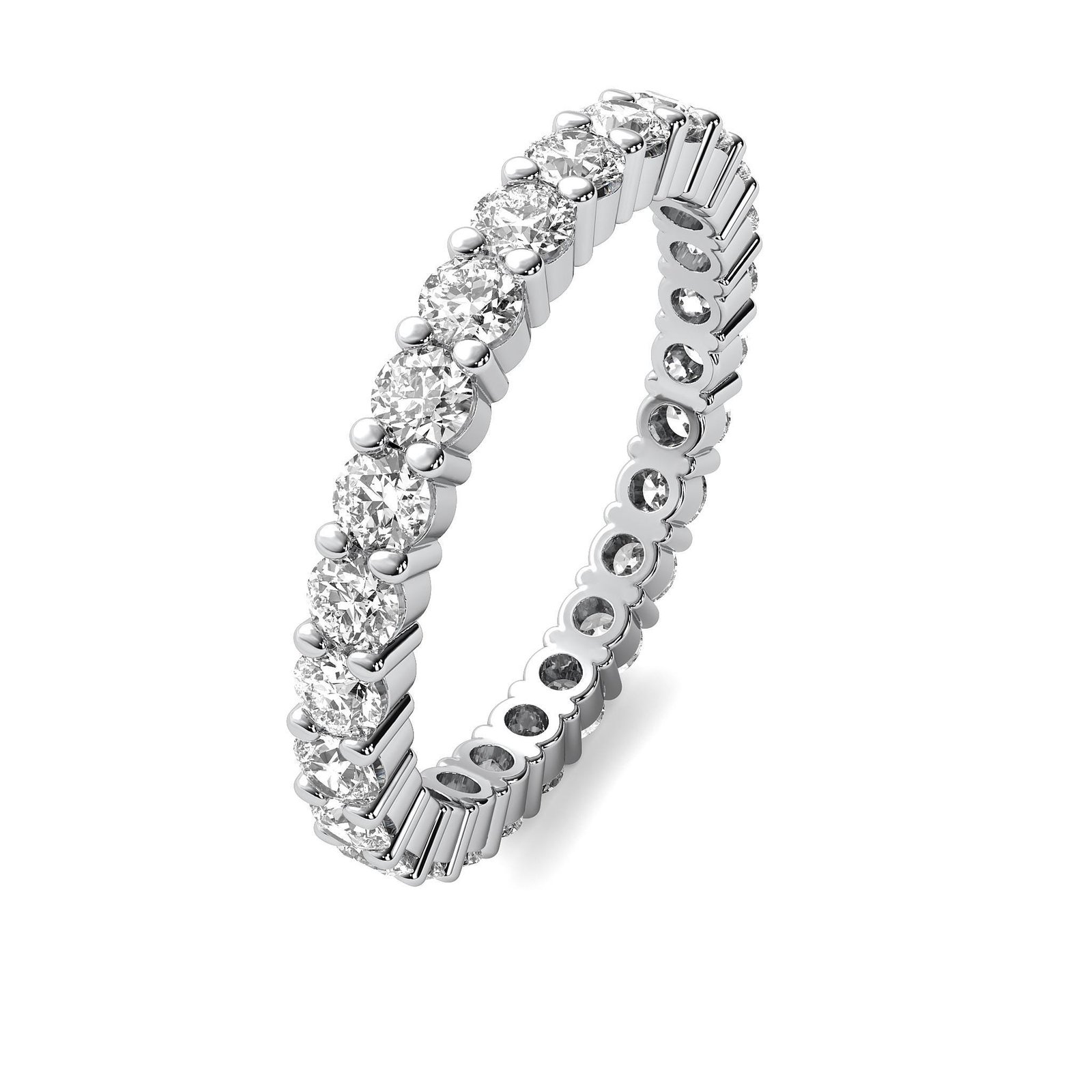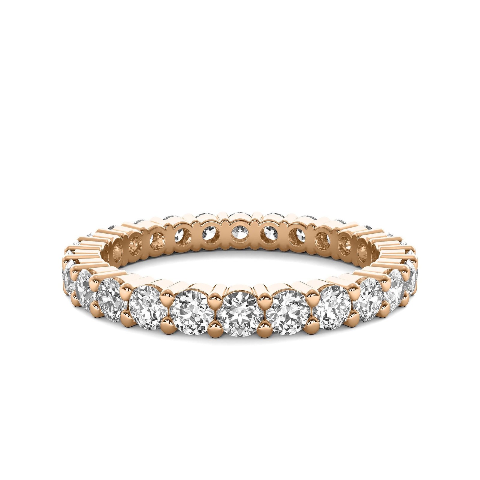 With a refined 2.2mm band width, this eternity ring offers the perfect balance of comfort and luxury, making it ideal for weddings, anniversaries, or as a statement stackable ring. The diamonds, graded E color and VS1 clarity, ensure exceptional fire and radiance.