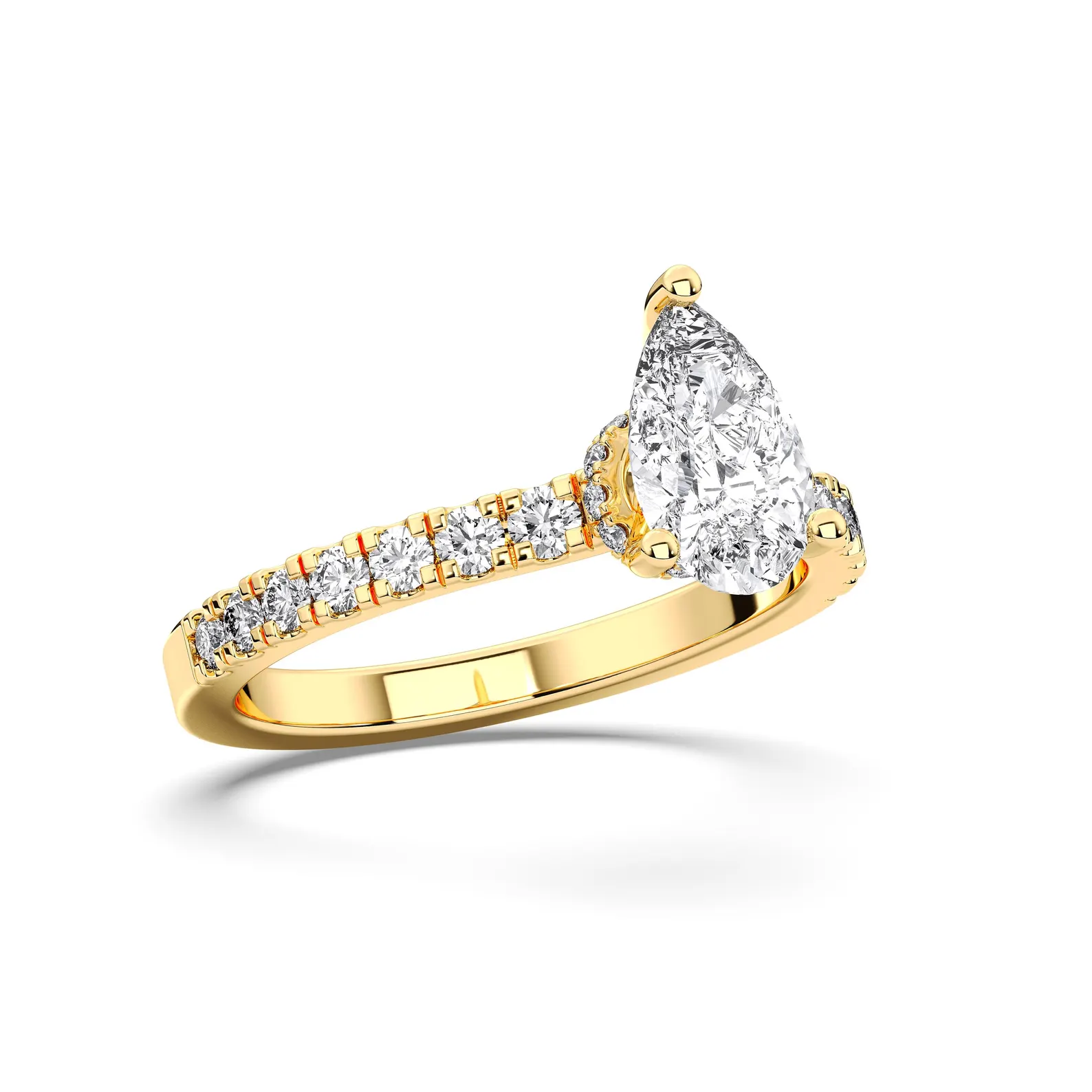 Elegant 1 CT Pear Cut Lab Grown Diamond Halo Engagement Ring in 18K Solid Gold with pavé band. IGI certified & BIS hallmarked