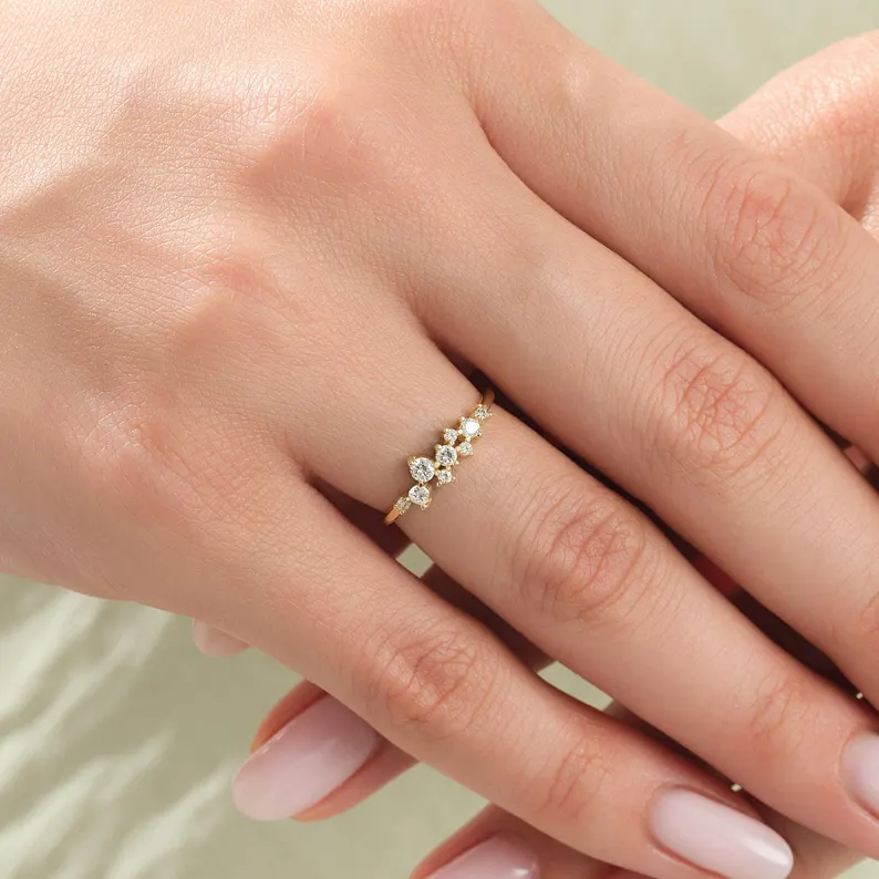 Radiate timeless brilliance with the 18K Solid Gold 2.00 CT Floating Cluster Lab Grown Diamond Wedding Band, an exquisite piece that embodies grace, elegance, and ethical luxury. Designed to symbolize everlasting love, this ring features a floating cluster design, where each lab-grown diamond appears to delicately float across the band, creating an illusion of continuous sparkle and light.