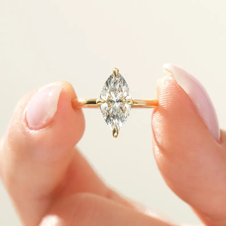 Elegant 2.00 CT marquise cut Lab Grown diamond solitaire engagement ring in 18K solid gold. IGI Certified for authenticity.