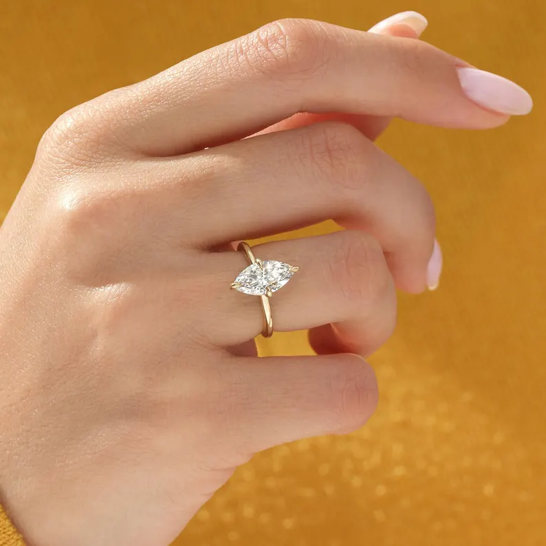 18K Solid Gold 2.00 CT Marquise Cut Solitaire Lab Grown Diamond Engagement Ring