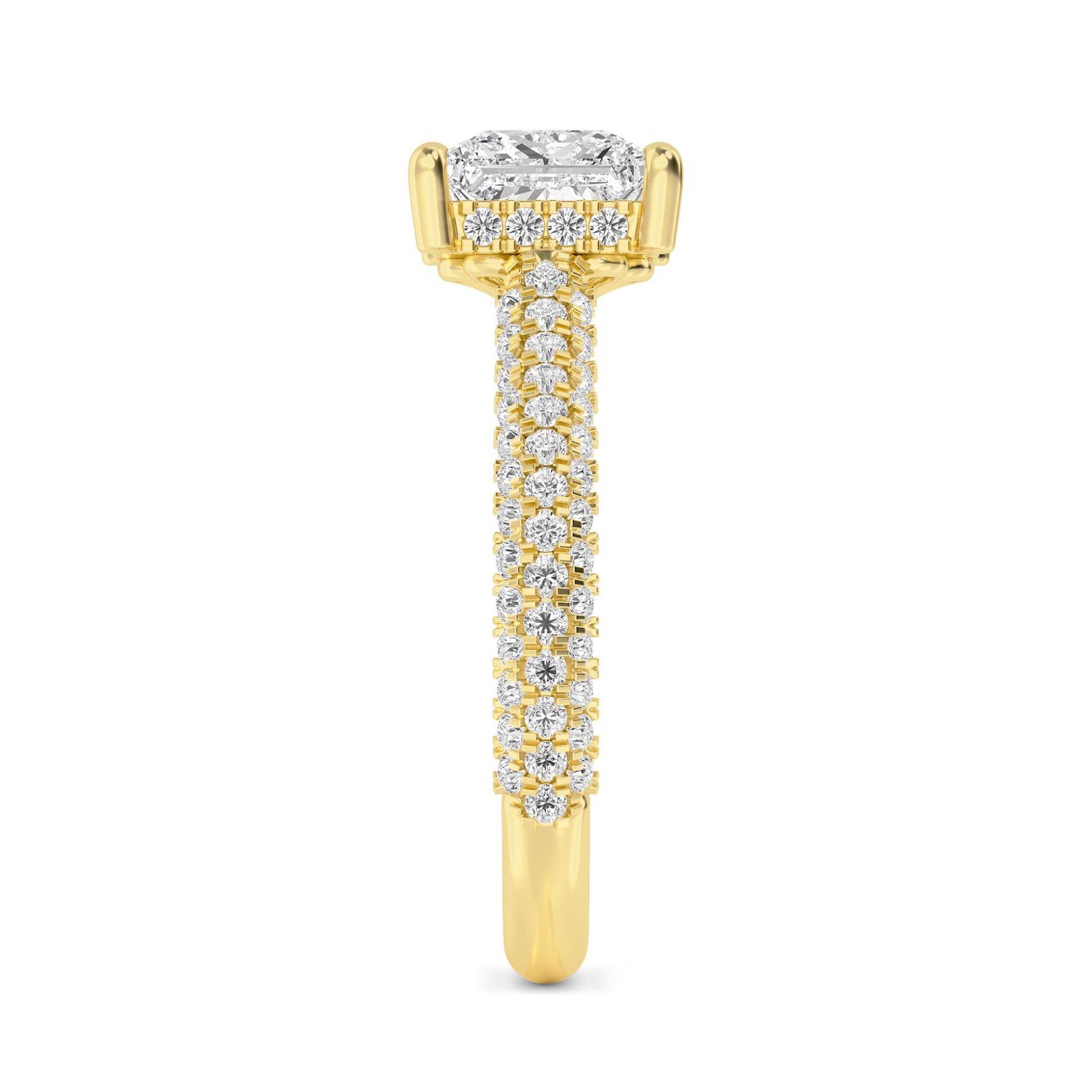 18K Solid Gold 1ct Radiant Cut Natural Diamond with Split Prongs and Classic Pave Engagement Ring