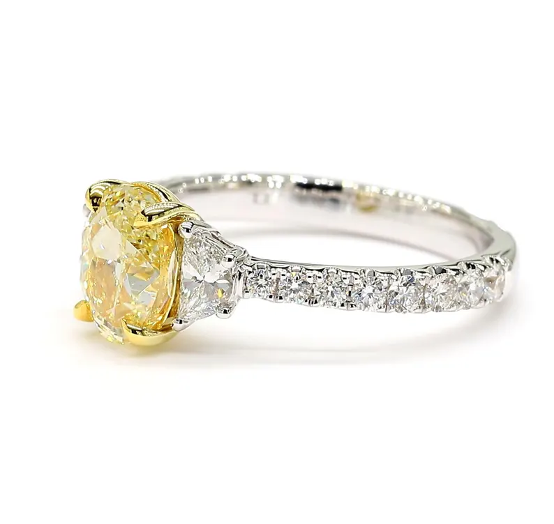This 18K solid gold cocktail ring features a stunning 1.50ct oval-cut light yellow Natural diamond, accented with white half-moon and round diamonds—certified for brilliance and ethical craftsmanship.