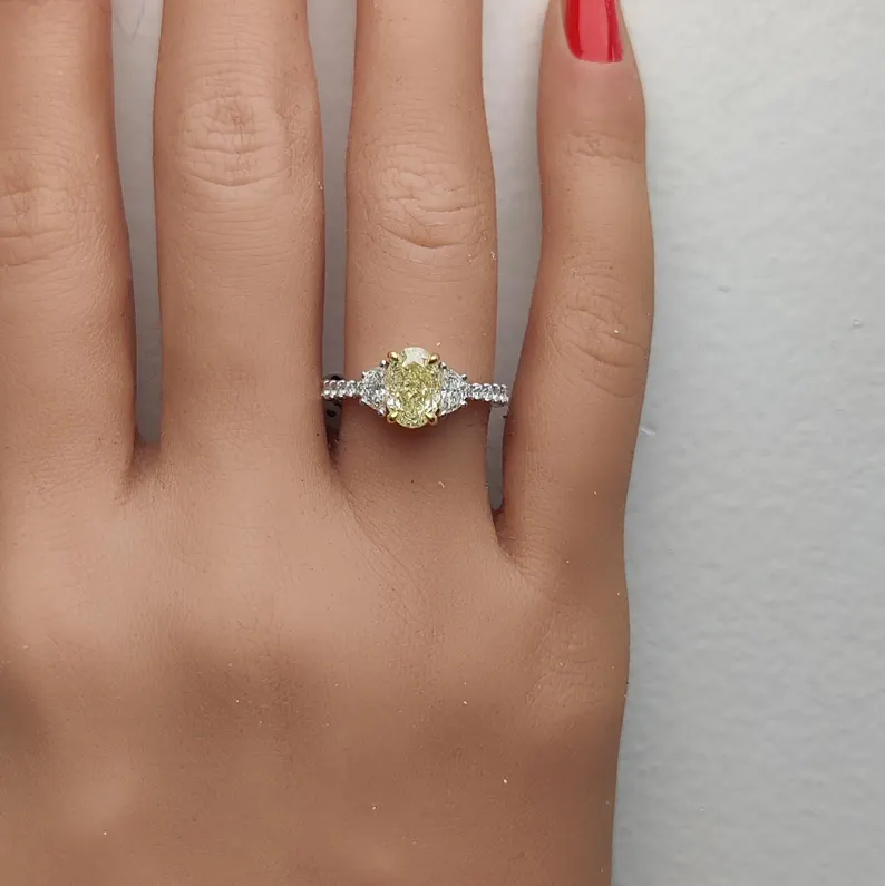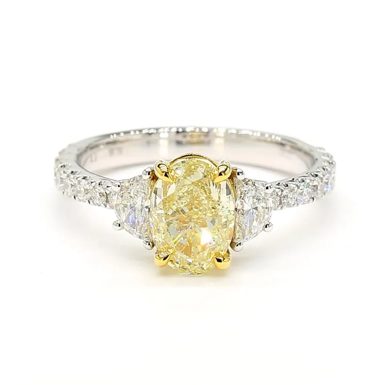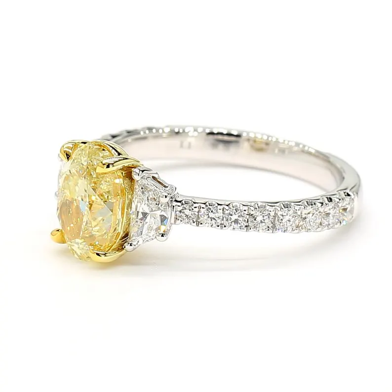 A radiant 2.42ct cocktail ring in 18K solid gold, showcasing a 1.72ct oval-cut light yellow Natural diamond, enhanced by elegant half-moon and round white diamonds. Certified brilliance with timeless appeal.