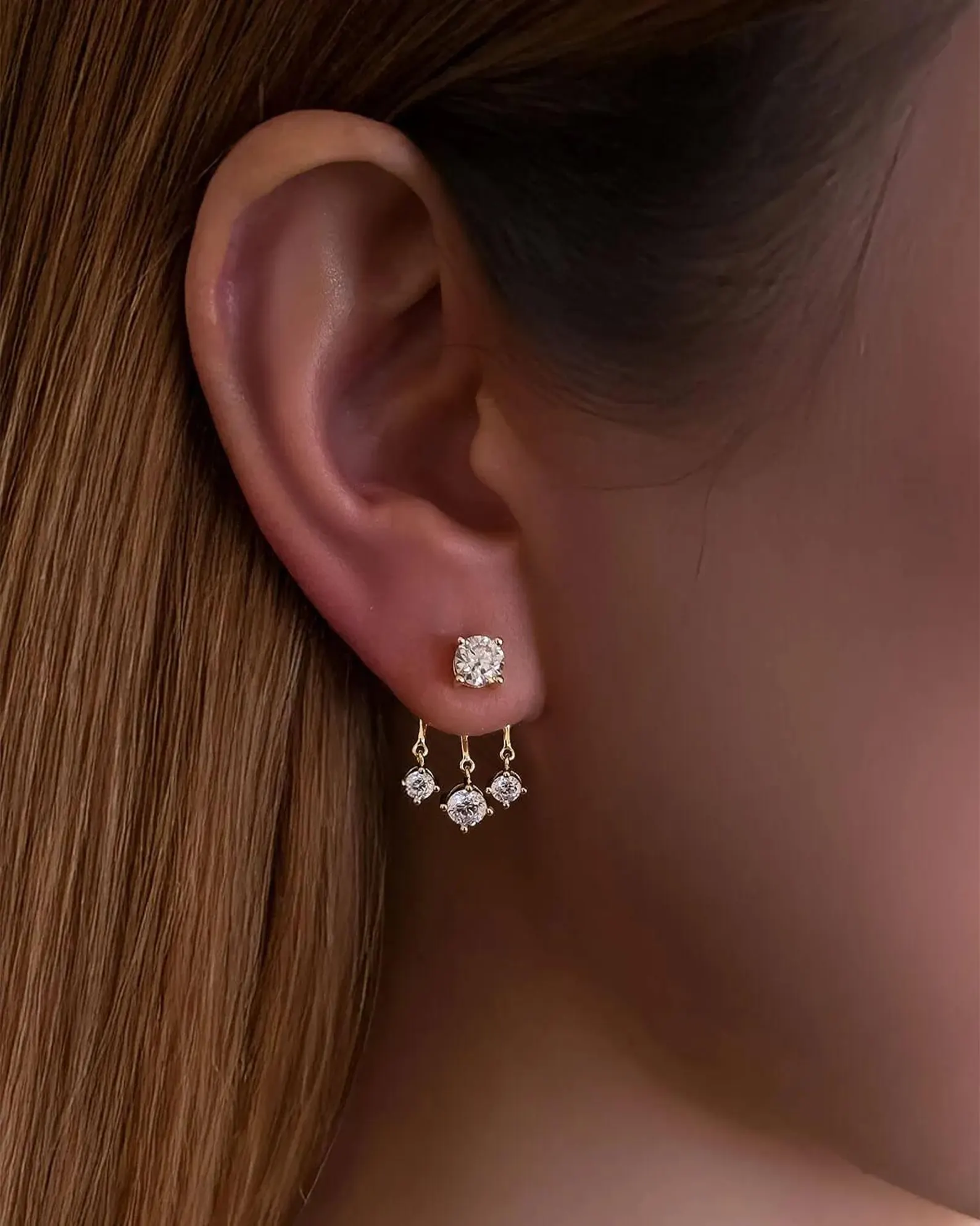 Featuring a total diamond weight of 2.4ct, the earrings are set with 8 natural diamonds of varying sizes—5mm × 2pcs, 4mm × 2pcs, 3mm × 4pcs—all graded E color and VS1 clarity, ensuring brilliant sparkle and exceptional fire. Measuring 13 × 21mm (0.52 × 0.83″), these earrings offer a bold yet refined look, perfect for special occasions or upscale events.
