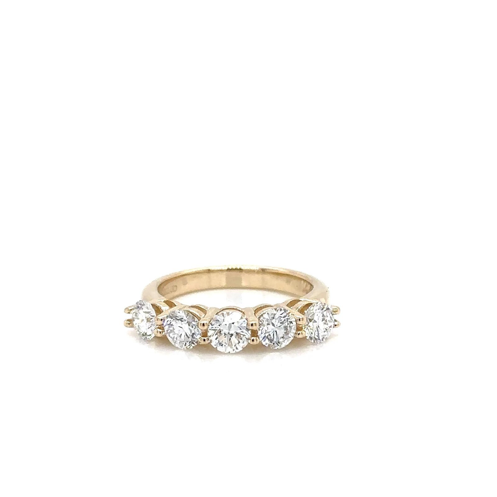 Elegant 18K gold 5-stone ring with 2.50ct IGI-certified Lab Grown round brilliant diamonds. Perfect for anniversaries & milestones.