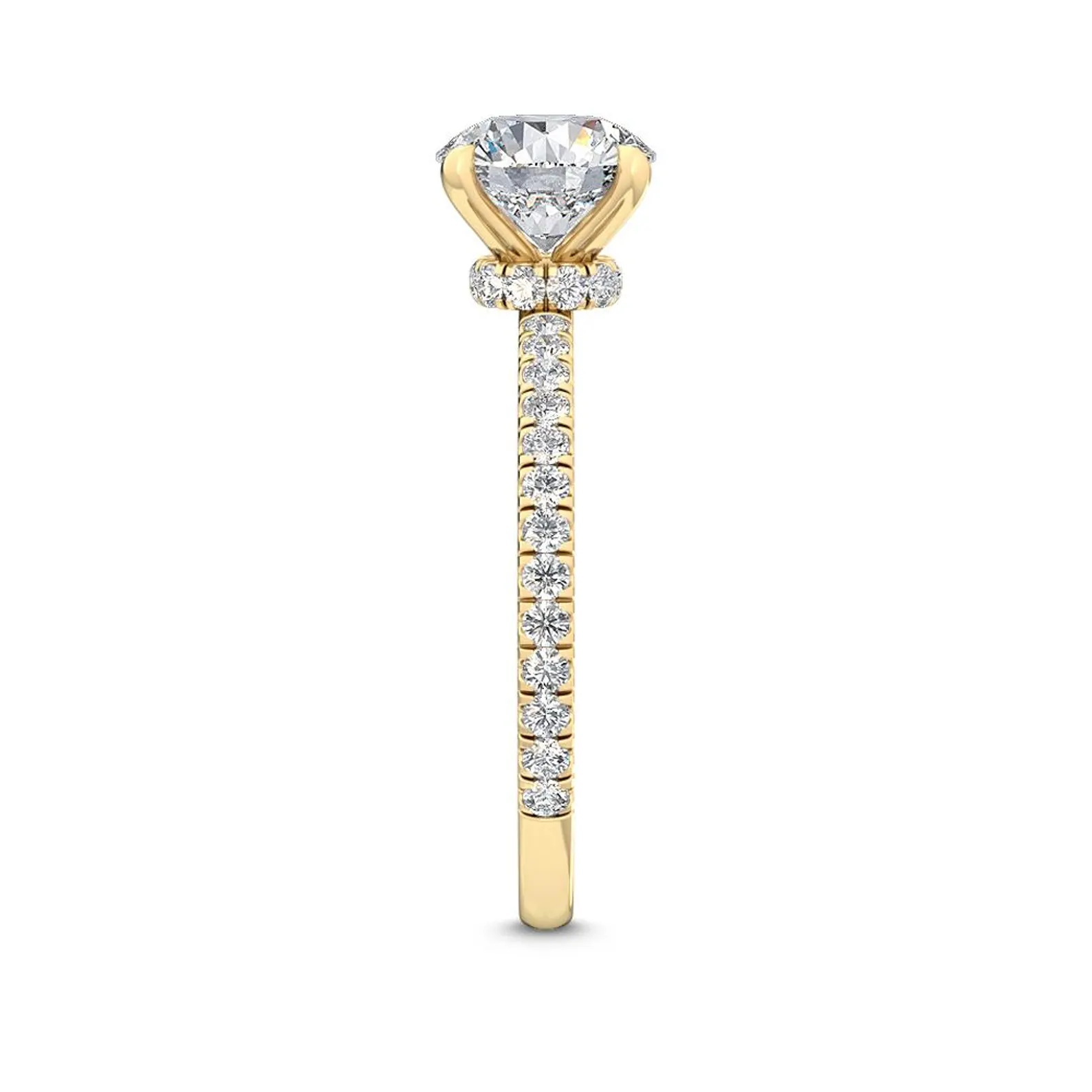 18K Solid Gold 2.57 CT Lab Grown Diamond Round Center with Pavé Side Stones Solitaire Engagement Ring
