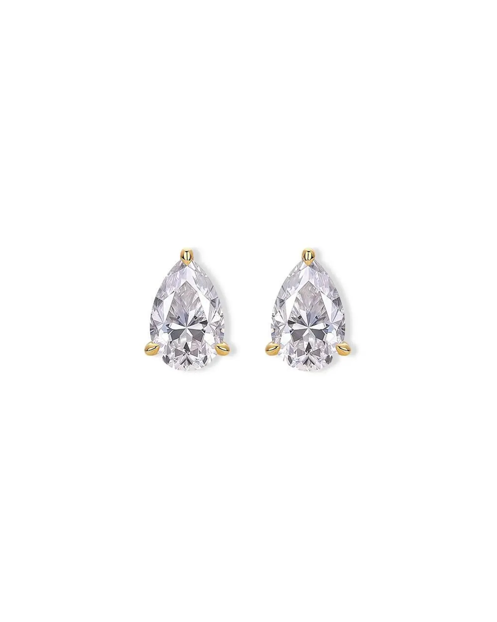 18K Solid Gold 2CT Pear Lab Grown Diamond Stud Earrings | 18K Solid Gold Solitaire Studs