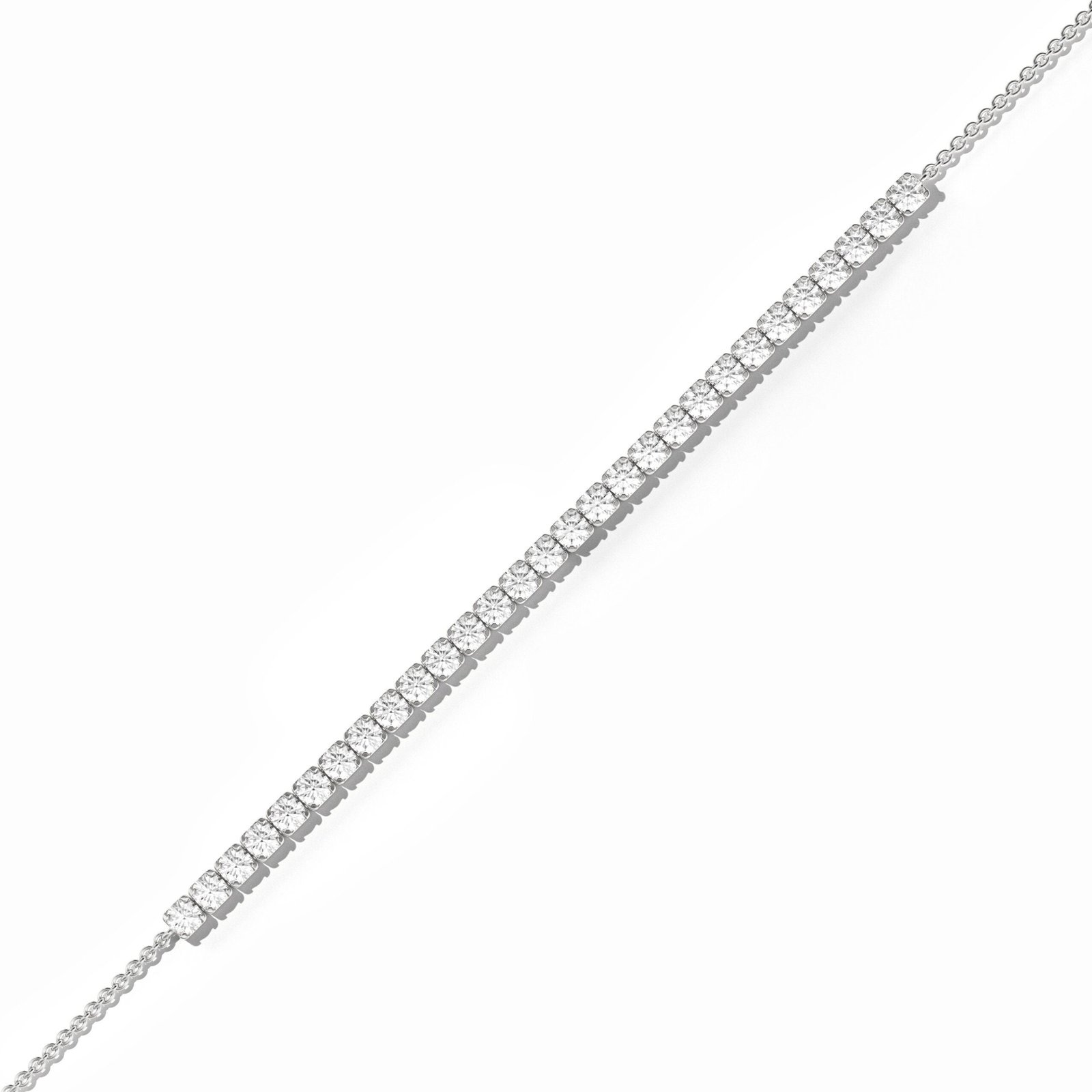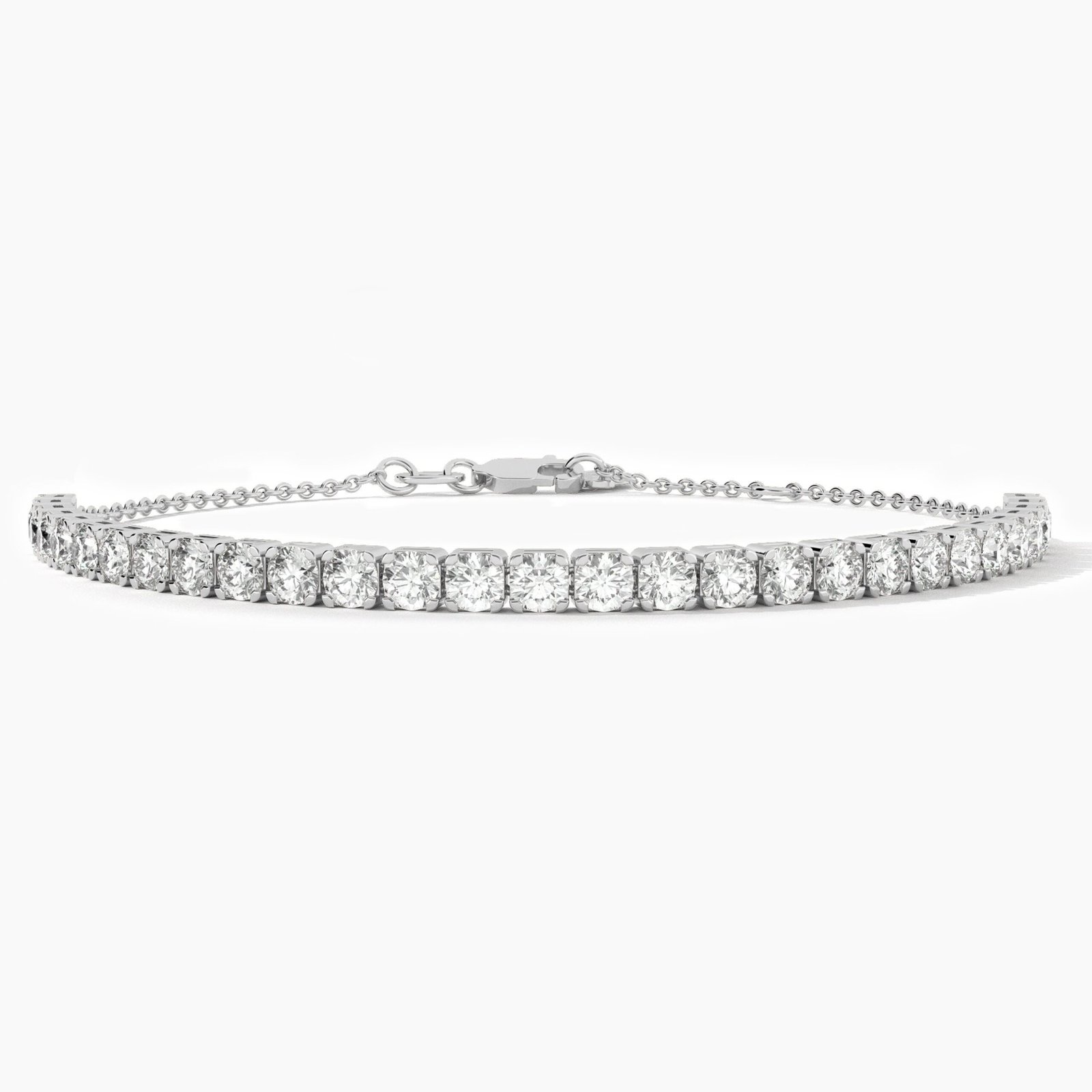 With a total diamond weight of 3.00 carats (±0.10ct) and a refined 3.20mm thickness, this bracelet offers a bold yet graceful presence on the wrist. Perfect for special occasions or as an everyday luxury statement, its classic tennis design ensures enduring style.