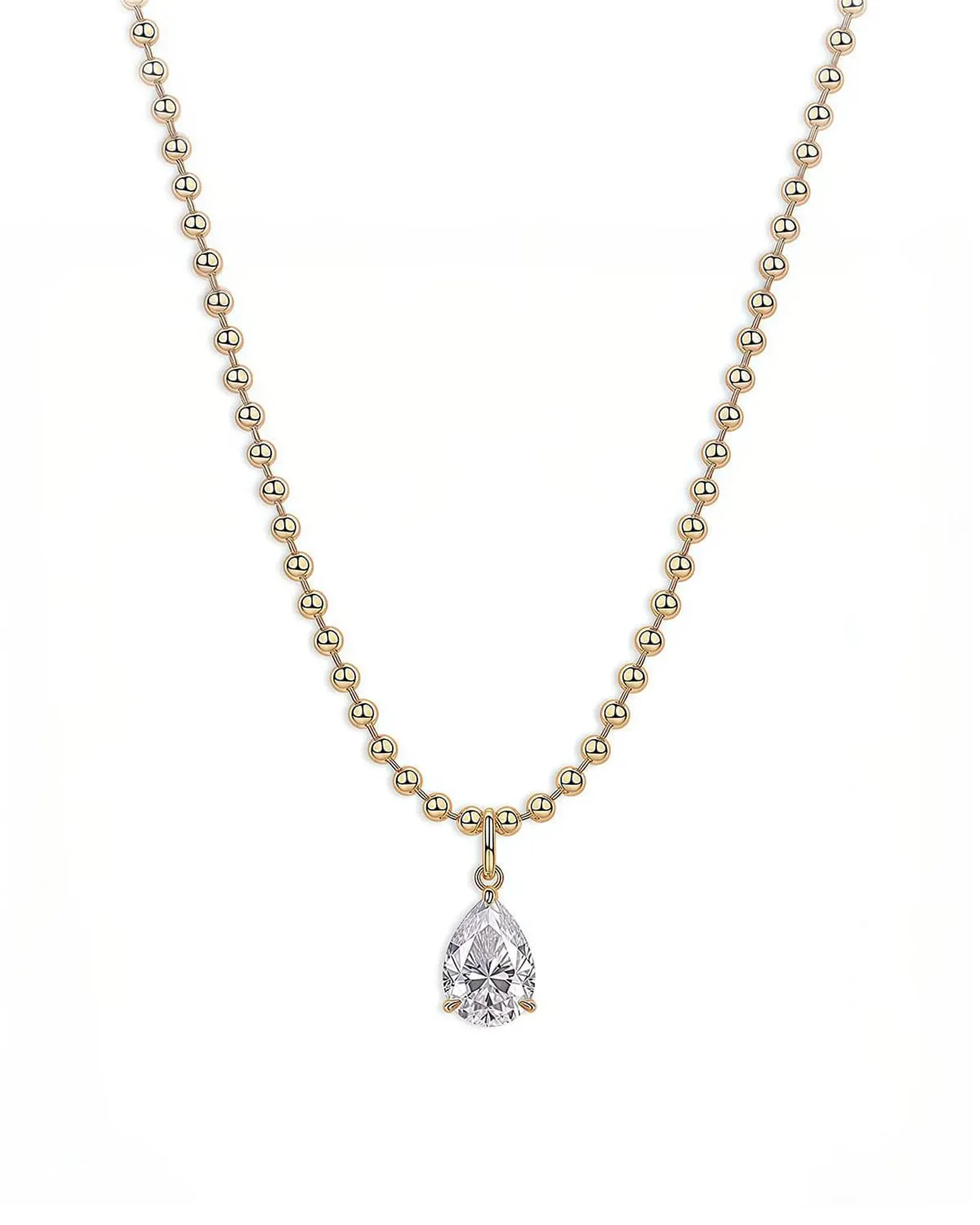 Make a dazzling statement with the 18K Solid Gold 3CT Pear Cut Lab Grown Diamond Statement Necklace, a luxurious centerpiece designed to captivate. Crafted in premium 18K solid gold, this necklace features a stunning pear-cut lab grown diamond solitaire, radiating brilliance and sophistication. Perfect for special occasions, this teardrop necklace is designed to elevate any outfit with timeless elegance.