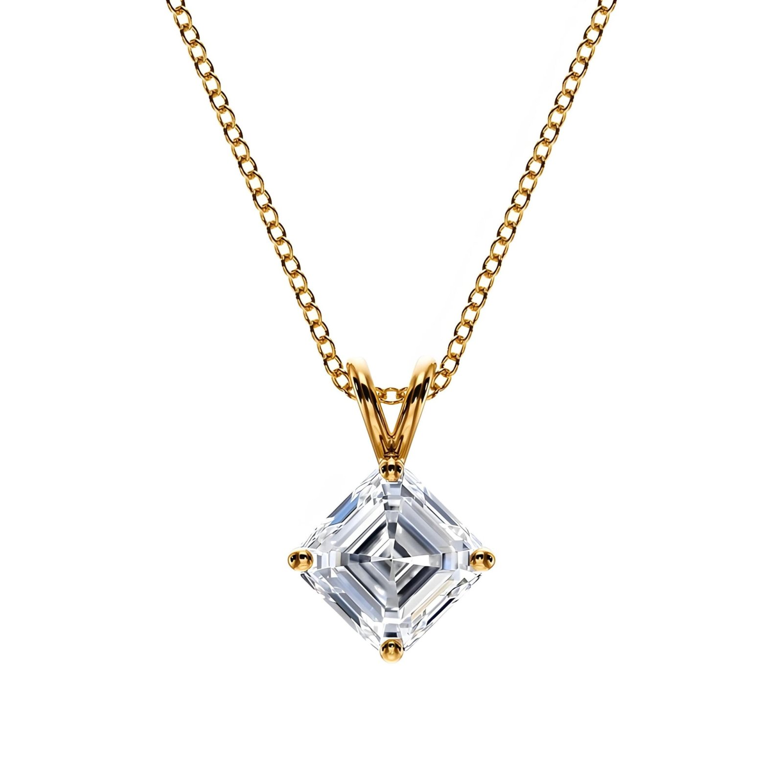18K Solid Gold Asscher Cut Lab Grown Diamond Solitaire Necklace