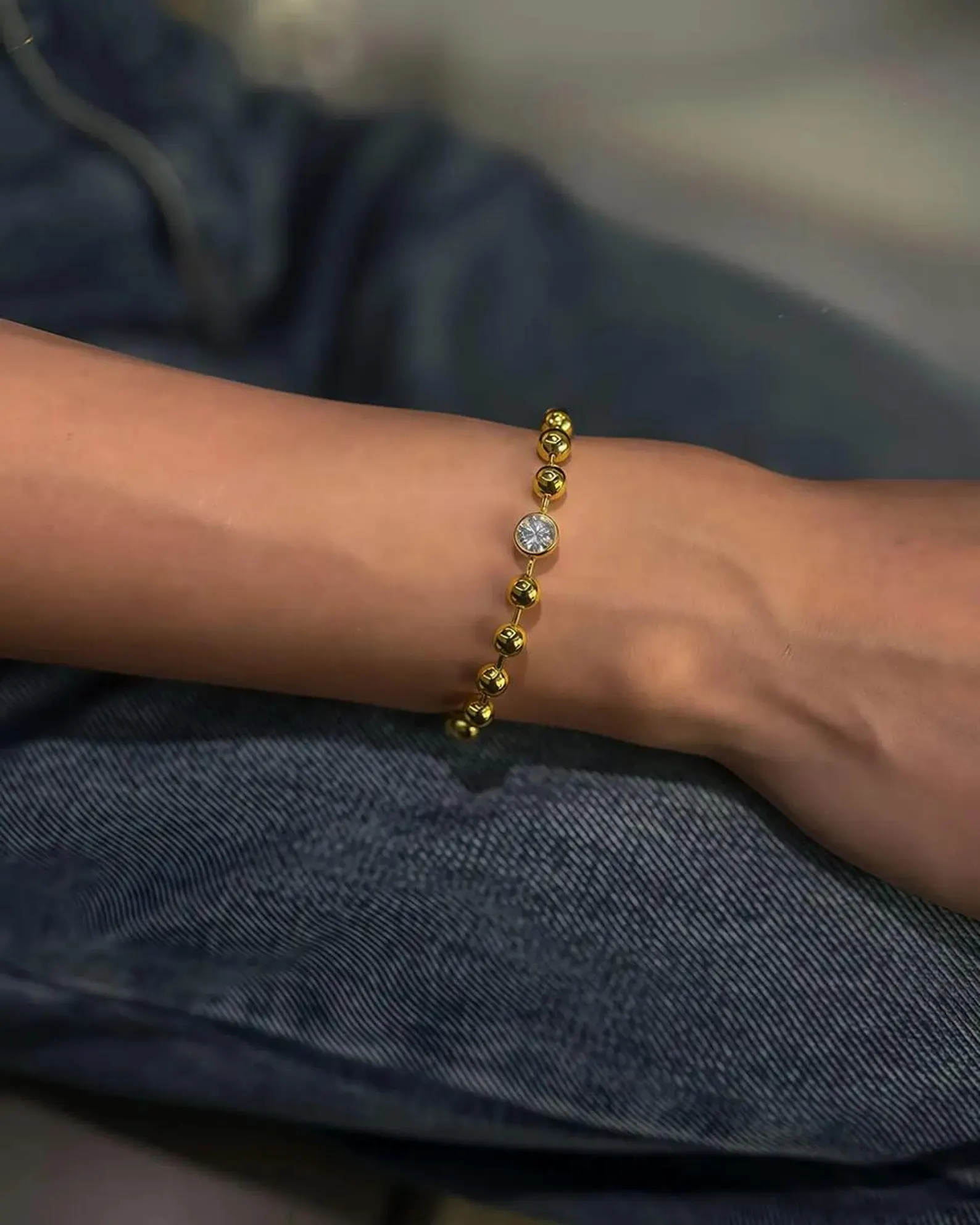 Minimalist 1ct Lab Grown Diamond Beaded Bracelet in 18K Solid Gold. Solitaire round diamond, IGI certified & BIS hallmarked.