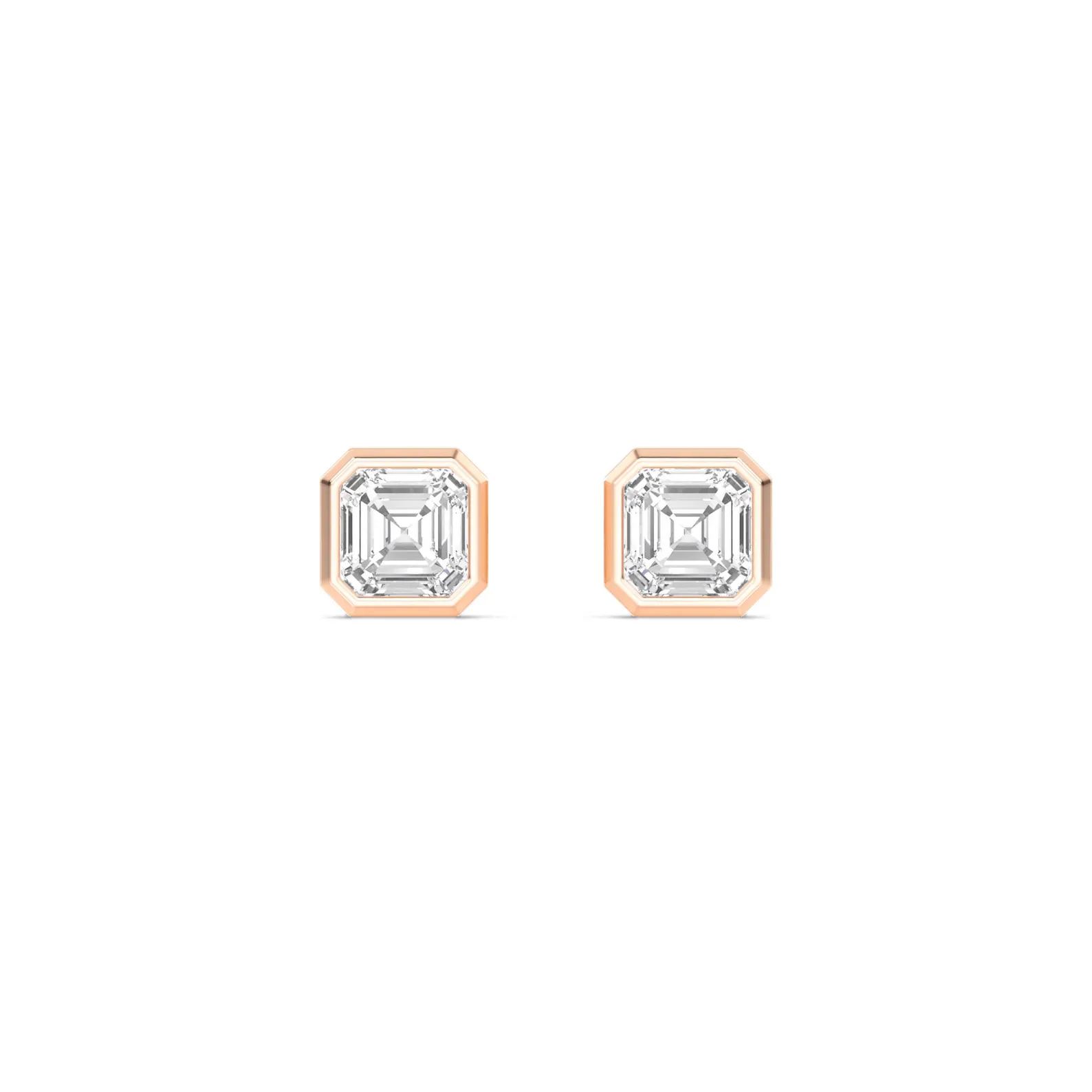 18K Solid Gold Bezel Set 1.01 Ct Asscher Cut Lab Grown Diamond Stud Earrings