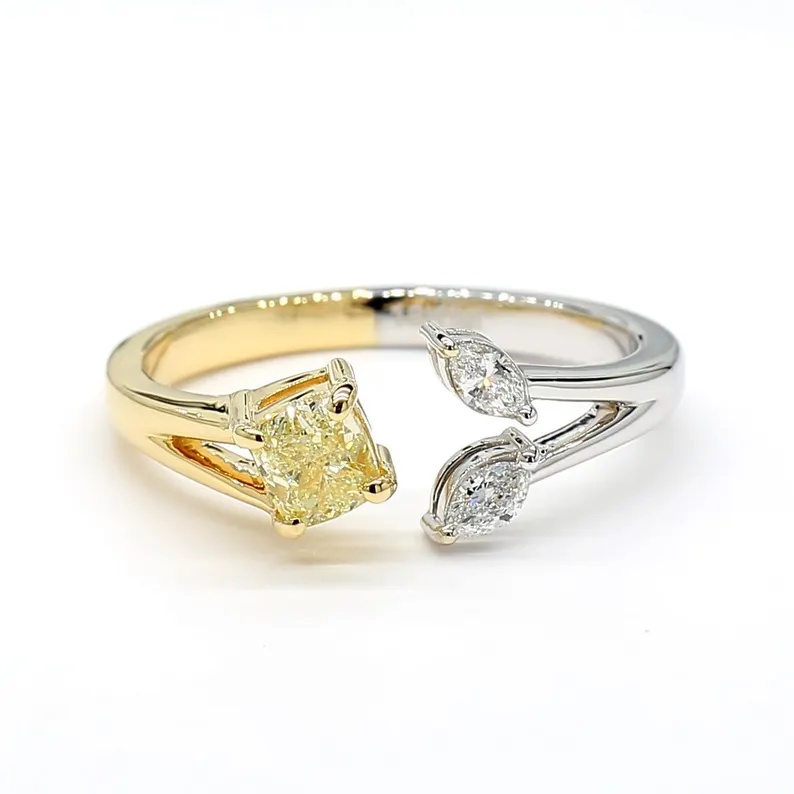 18K Solid Gold Cushion Lab Grown Yellow Diamond 0.60 Carat Cocktail Ring