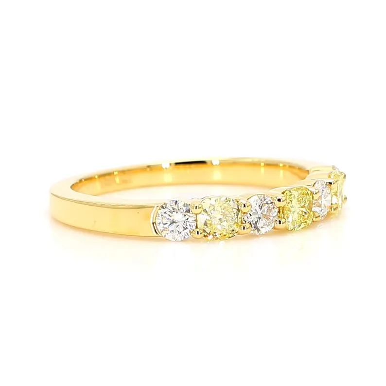 Elegant 18K gold cocktail band with 0.90ct cushion-cut yellow and round white Natural diamonds. Certified & ethically crafted.