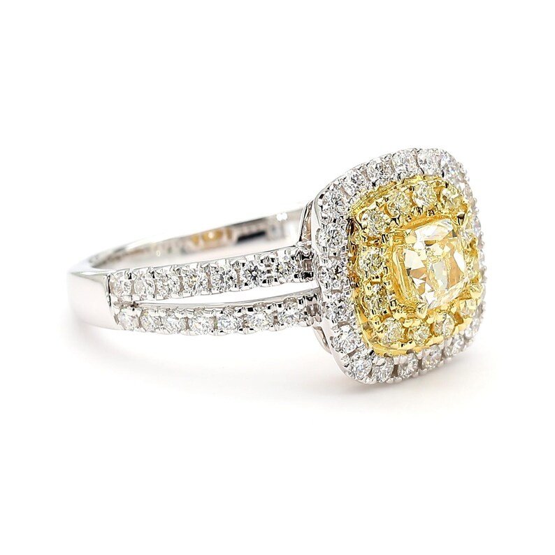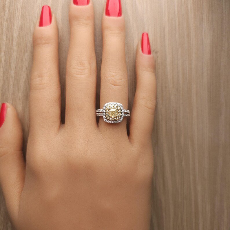 18K Solid Gold Cushion Natural Yellow Diamond 1.23 Carat Cocktail Ring