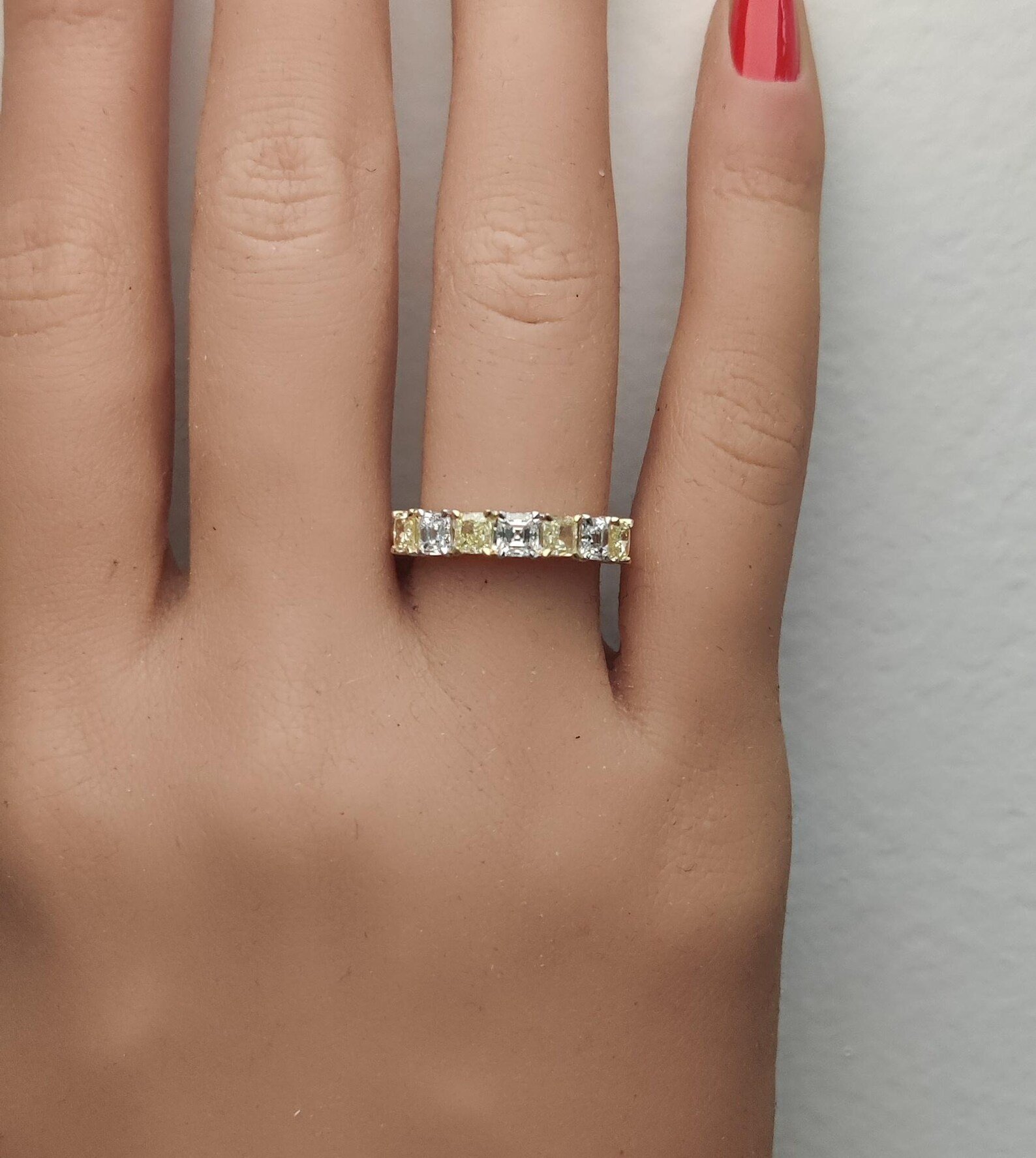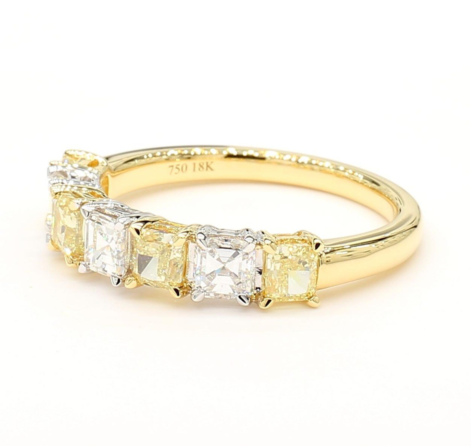 A vibrant 1.53 carat cocktail band featuring cushion-cut yellow diamonds and Asscher-cut white diamonds, elegantly set in 18K solid gold.