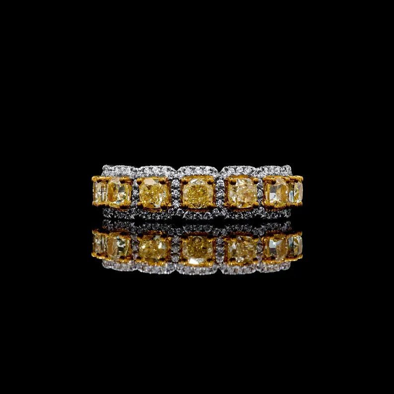 18K Solid Gold IGI Certified Lab Grown Yellow Cushion Diamond 2.75 Carat CTW Cocktail Ring