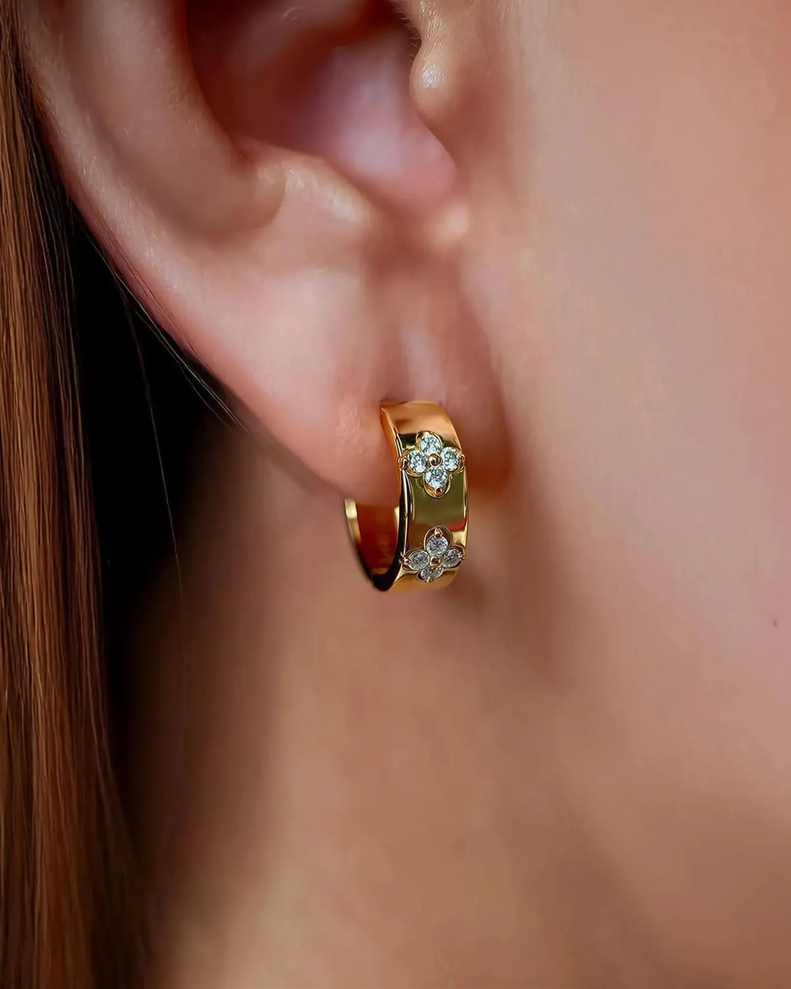 Certified by the Gemological Institute of America (GIA)Â these earrings guarantee authenticity, exceptional quality, and lasting value. Ideal as a thoughtful gift for her or as a stylish addition to your personal collection, these double clover diamond hoops combine contemporary elegance with timeless sophistication.