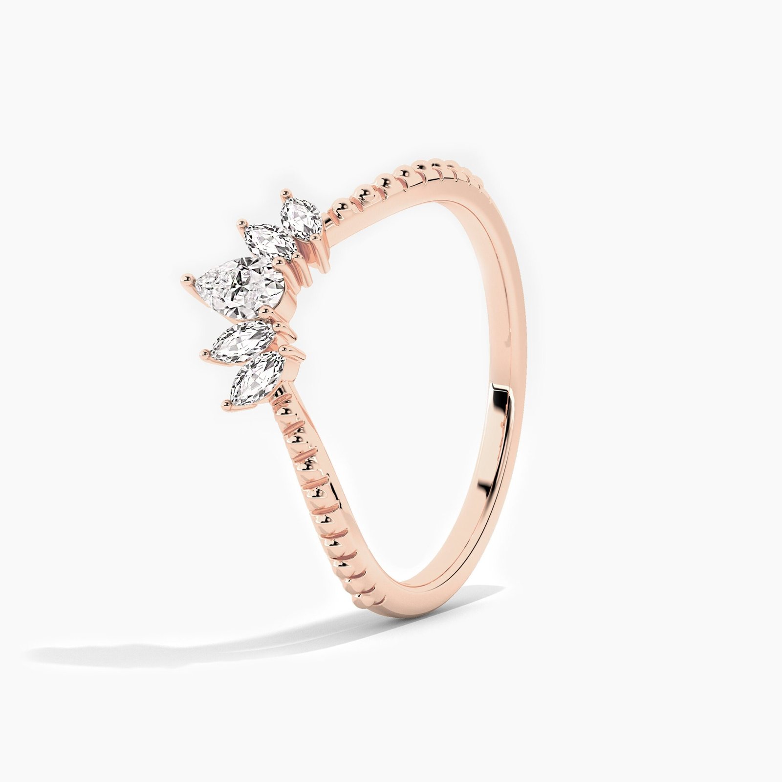 Elegant 18k solid gold five-stone stackable band with marquise & pear natural diamonds (0.20ct). Perfect anniversary ring. Certified GIA & BIS Hallmarked.