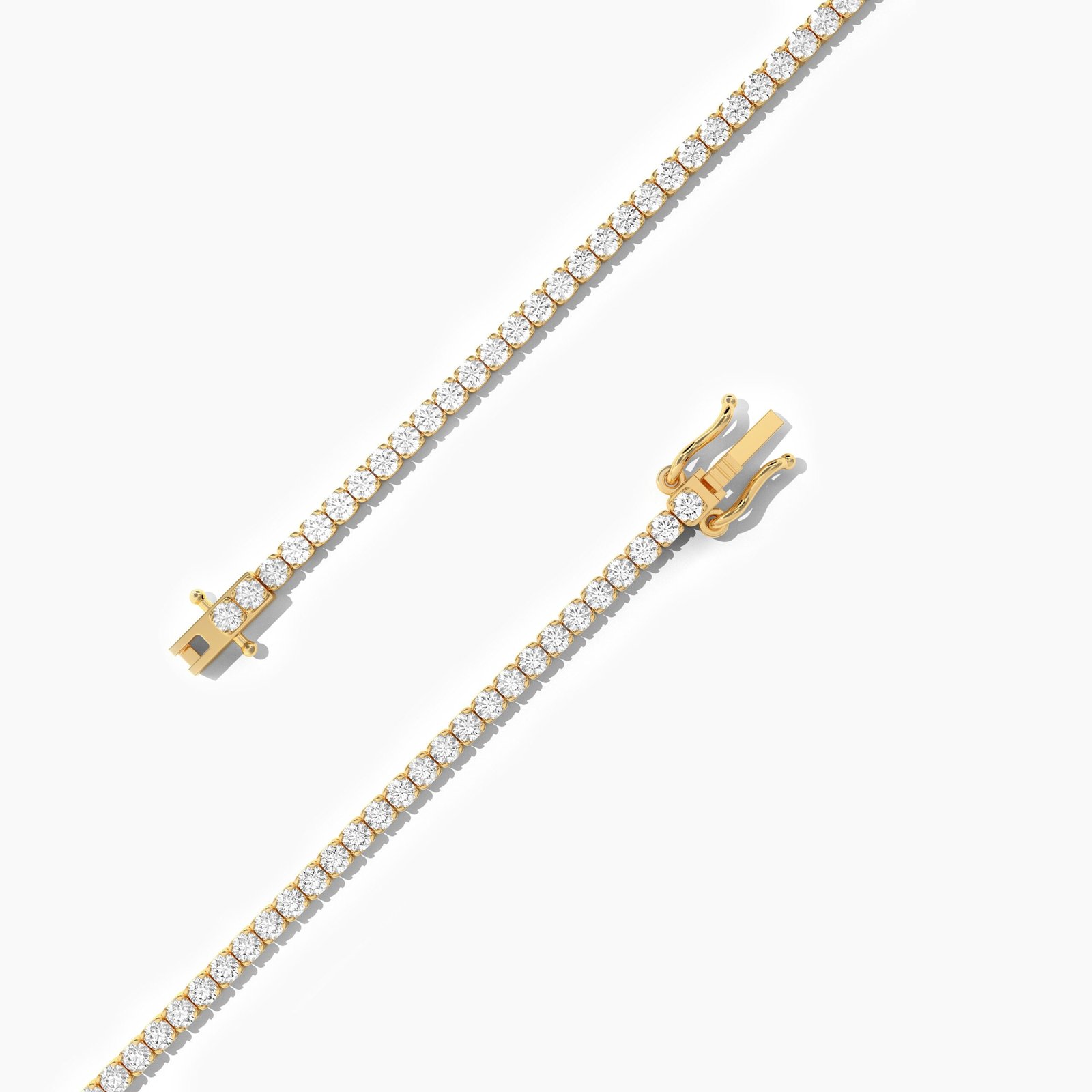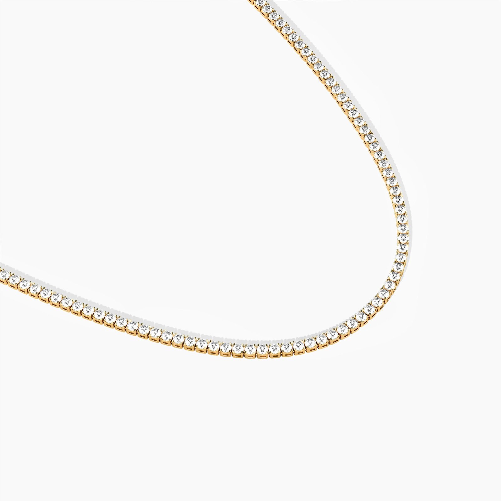 Elevate your jewelry collection with our 18K Solid Gold Flexible Lab Grown Diamond Tennis Necklace | Choker Necklace. Meticulously crafted in 18K solid gold, this luxurious piece features round-cut Lab Grown diamonds measuring 2.00mm (±0.10mm), offering a continuous line of brilliance that sits elegantly around the neck.