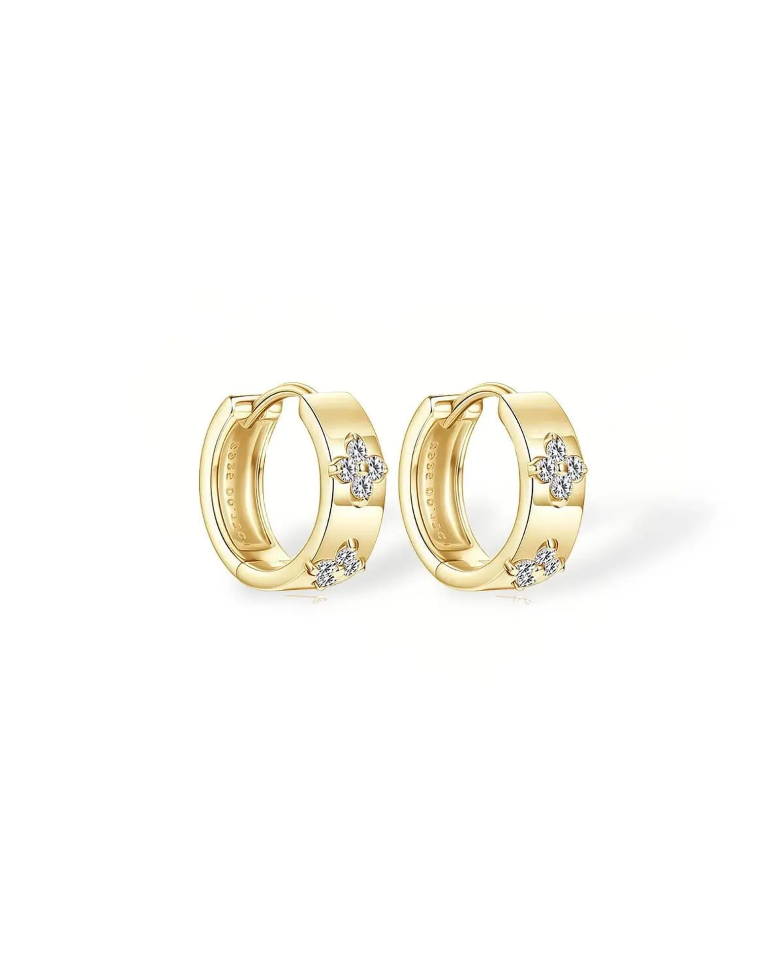 18K Solid Gold Four Leaf Clover Lab Grown Diamond Stud Earrings