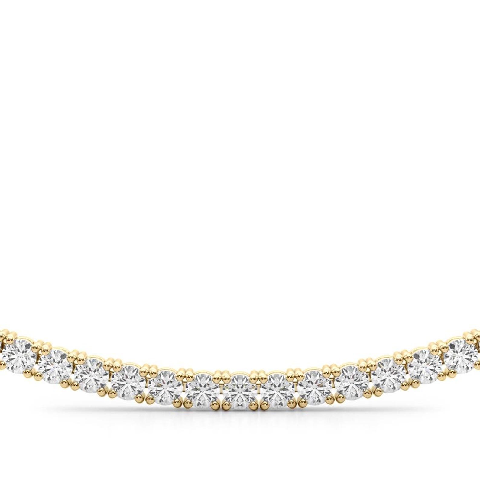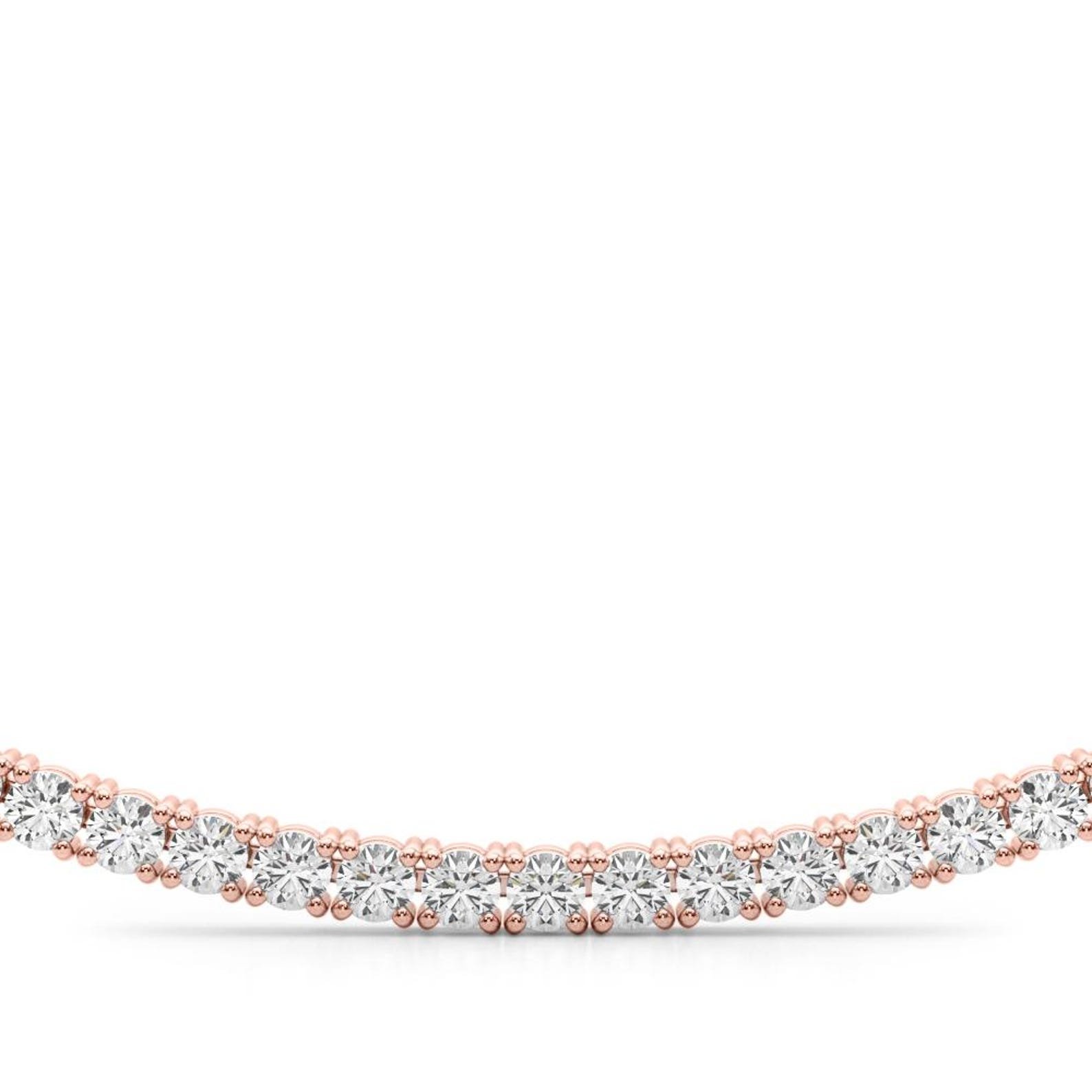 - Design: Curved bar of continuous round diamonds with a cable chain on each side