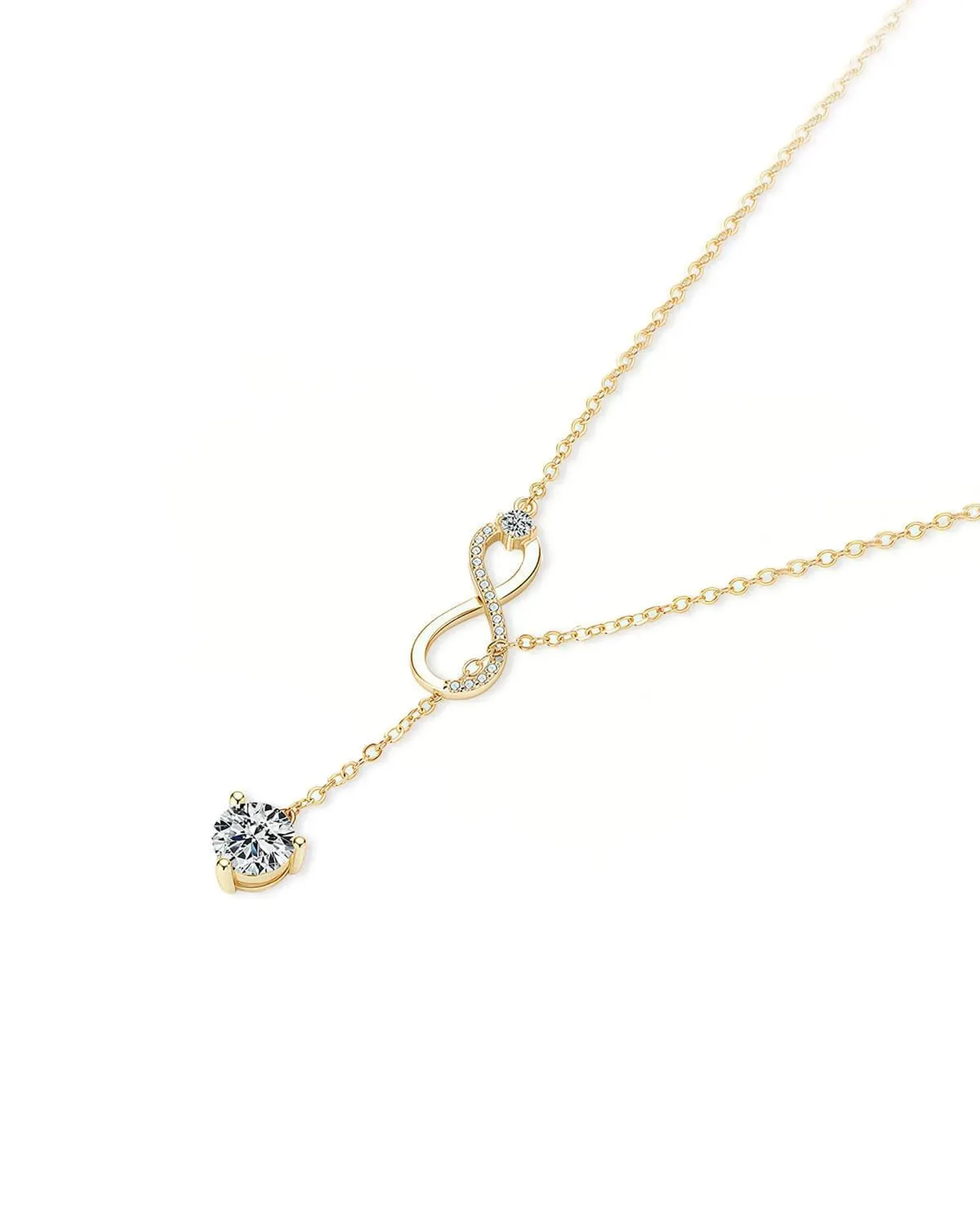 18K Solid Gold Infinity & Solitaire Natural Diamond Pendant With Long Chain Necklace