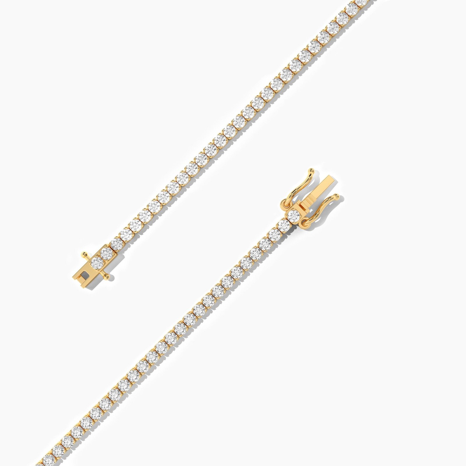 Classic 2.00mm 18K solid gold Lab Grown diamond tennis bracelet with 1.96 diamonds in a 4-prong setting. IGI certified & BIS hallmarked.