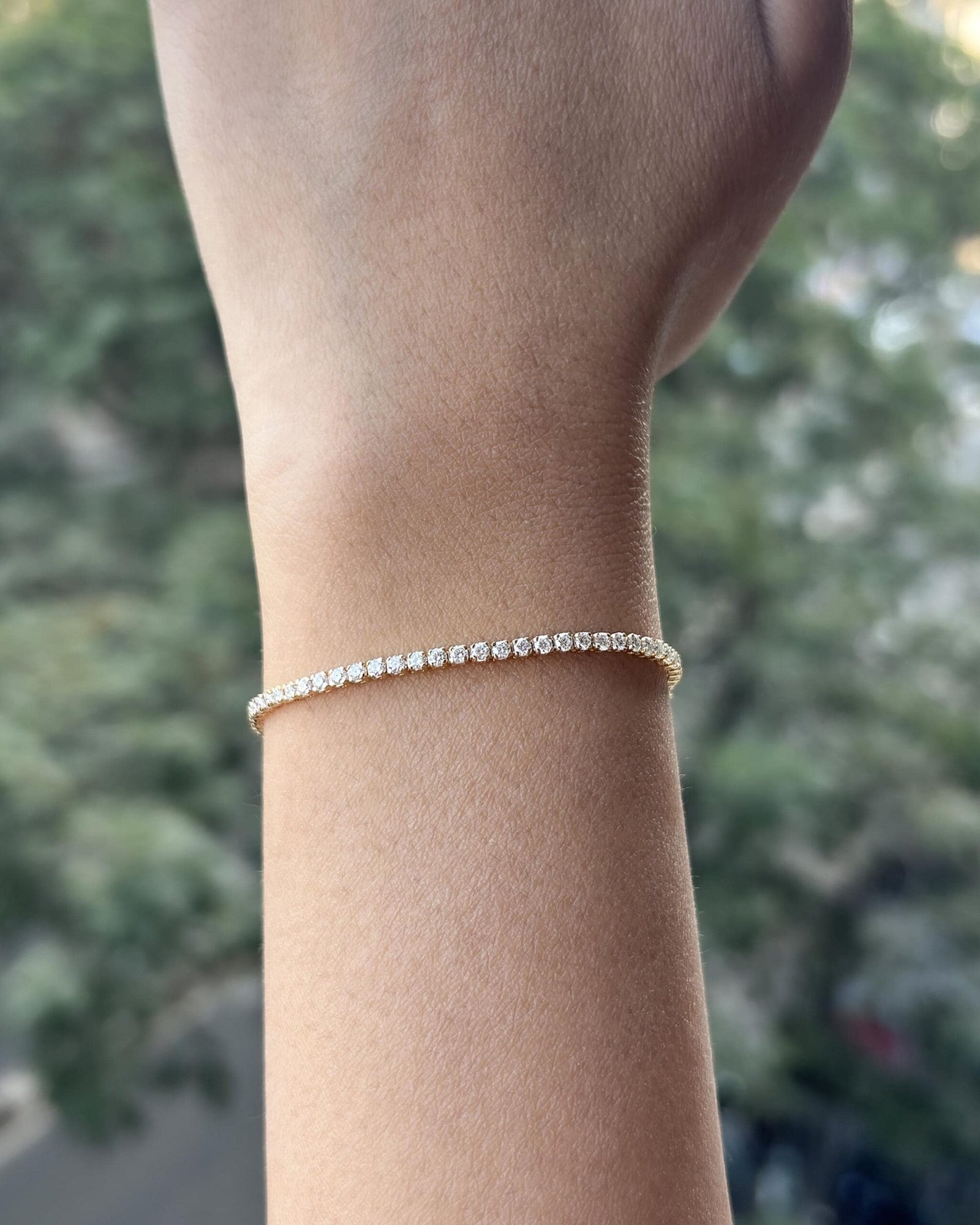 18K Solid Gold Lab Grown Diamond 2.00mm Tennis Bracelet | 4 Prong Wedding Gift for Women