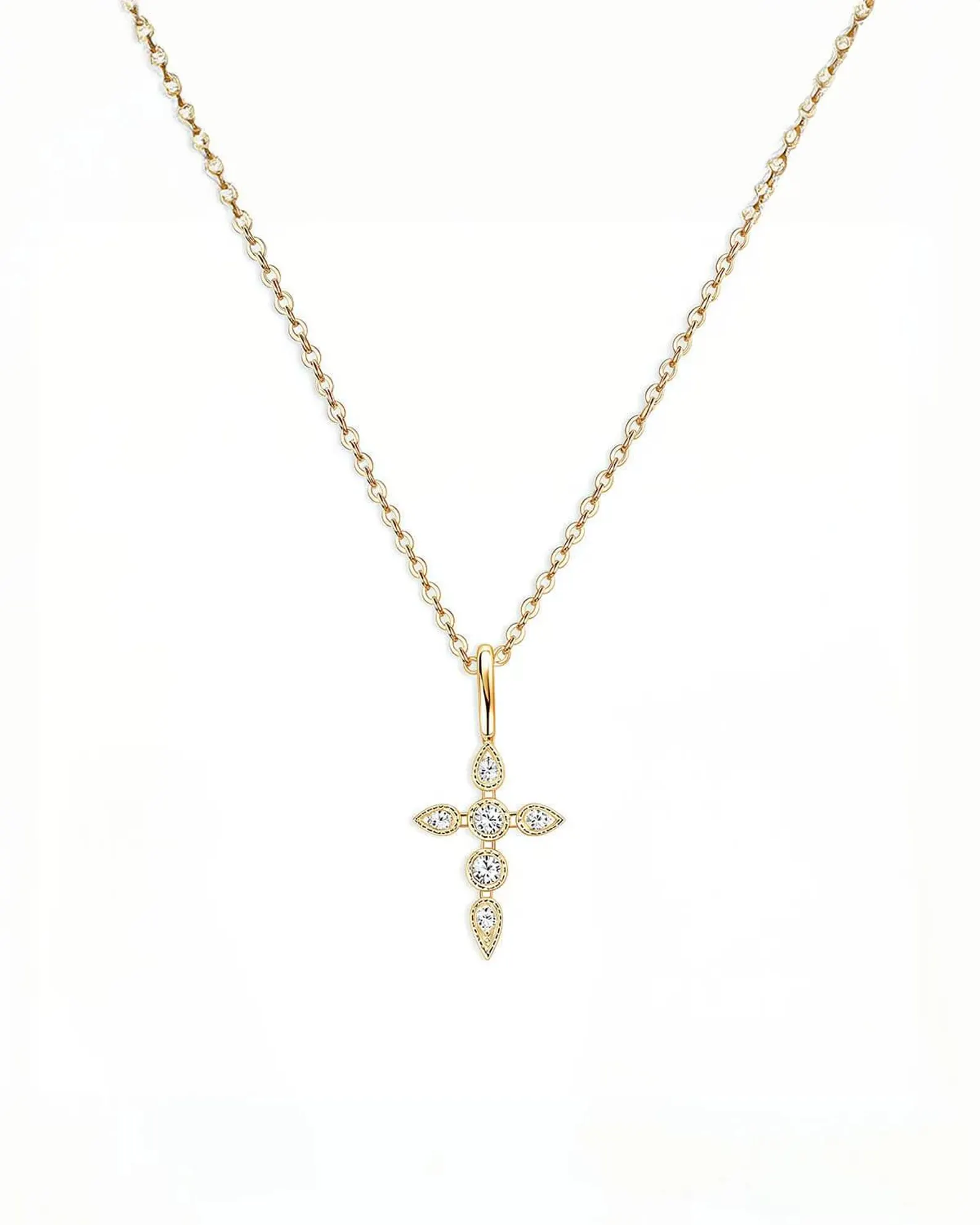 18K Solid Gold Lab Grown Diamond Cross Pendant Necklace
