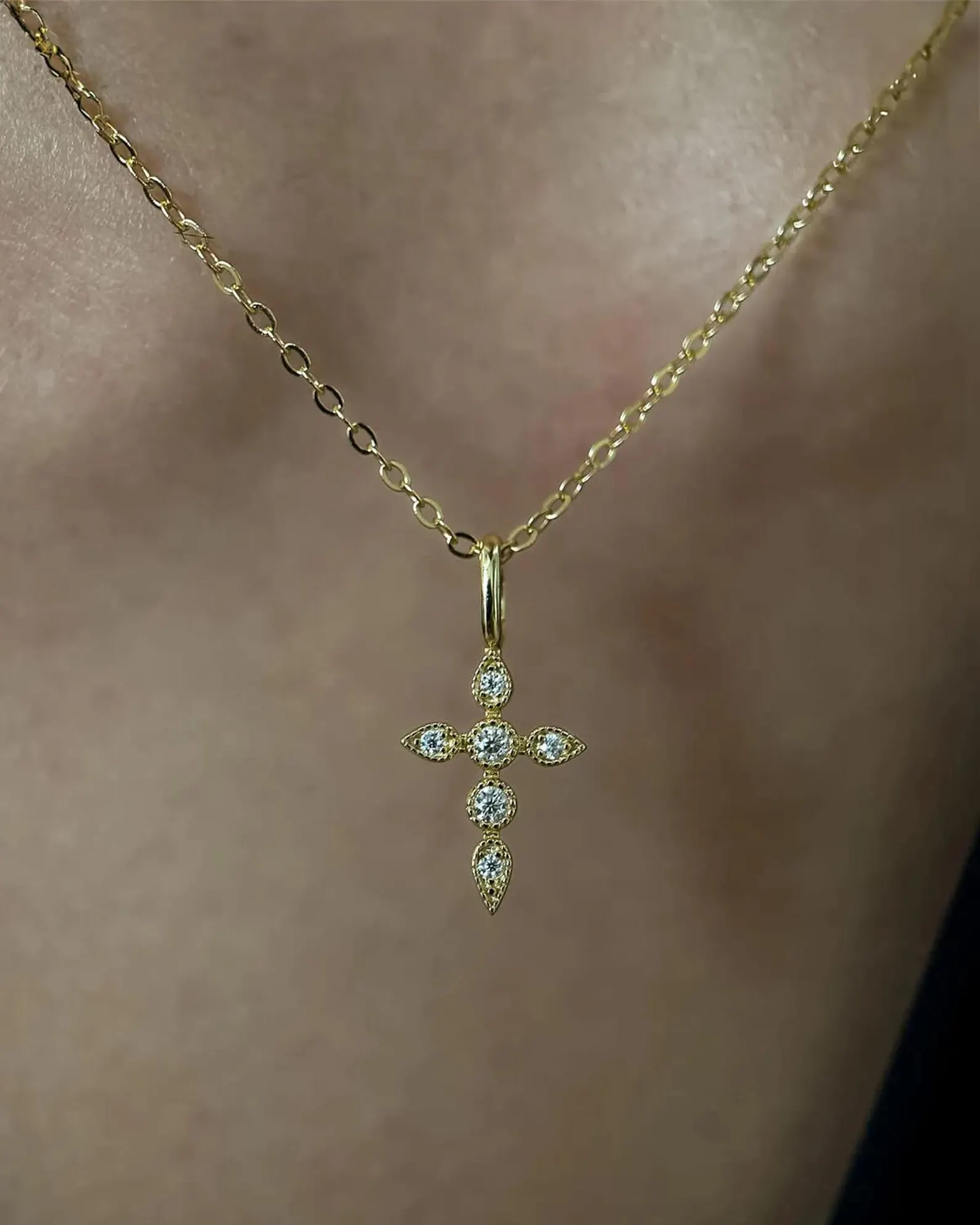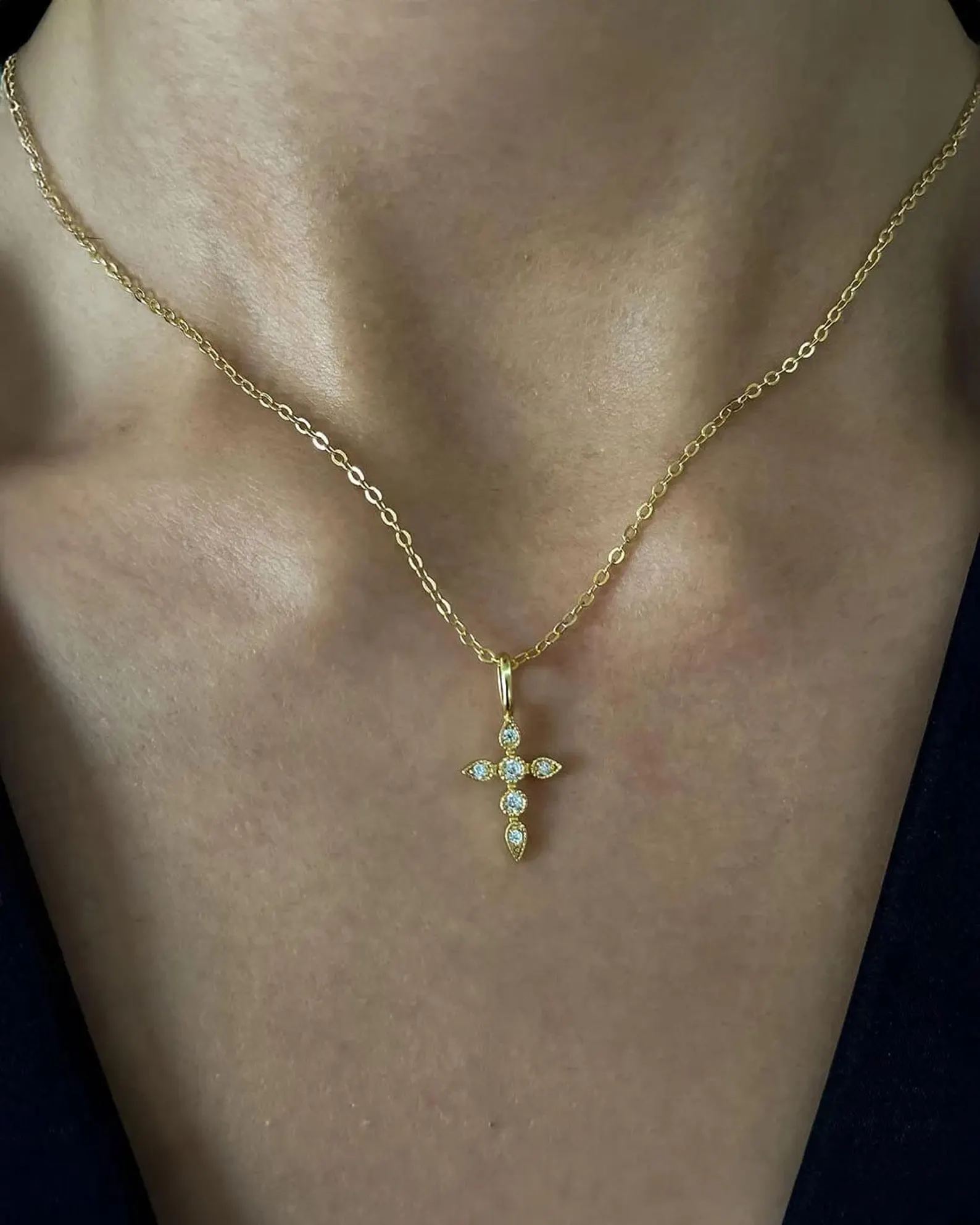 Elegant 18K gold cross pendant necklace with 0.50ct Lab Grown diamonds. IGI certified, a timeless symbol of faith and style.