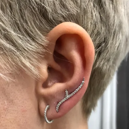 18K gold tribal thorn stud earrings with 46 round-cut natural diamonds totaling 0.25ct. GIA certified, VS1 clarity.