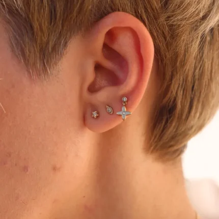 Dainty 18K gold heart-shaped stud set with 12 natural diamonds (0.05ct). Perfect for tragus, helix, or lobe piercings.