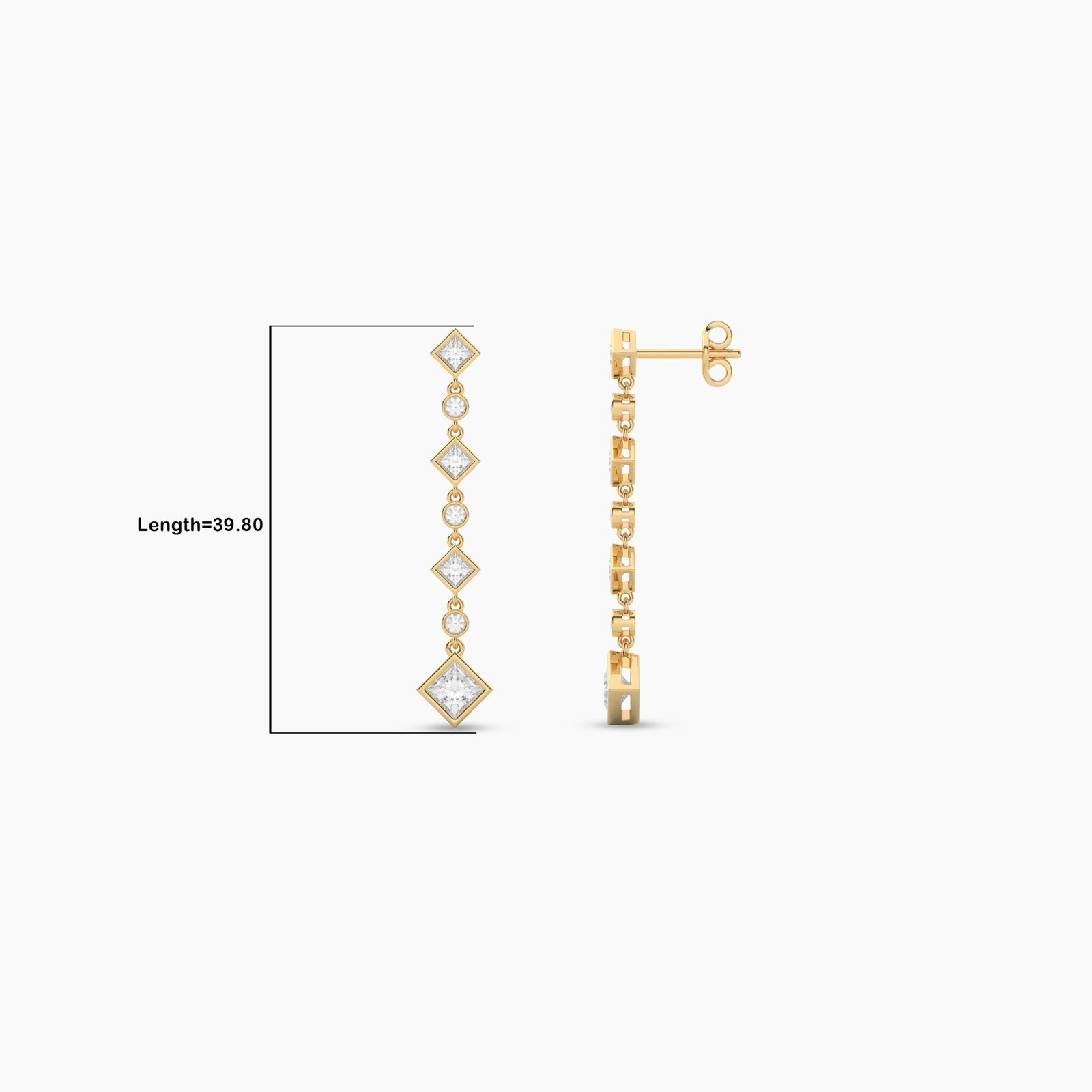 Elevate your elegance with these 18K Solid Gold Lab Grown Diamond Drop Earrings, crafted with a refined combination of round and princess-cut diamonds. Designed with precision, the earrings showcase a graceful drop silhouette measuring 39.80mm, making them the perfect statement accessory for both special occasions and refined everyday wear. Each diamond is hand-selected for its exceptional E color and VS1 clarity, ensuring brilliance from every angle. Certified by IGI, these earrings promise both luxury and authenticity, making them a timeless addition to any fine jewelry collection.