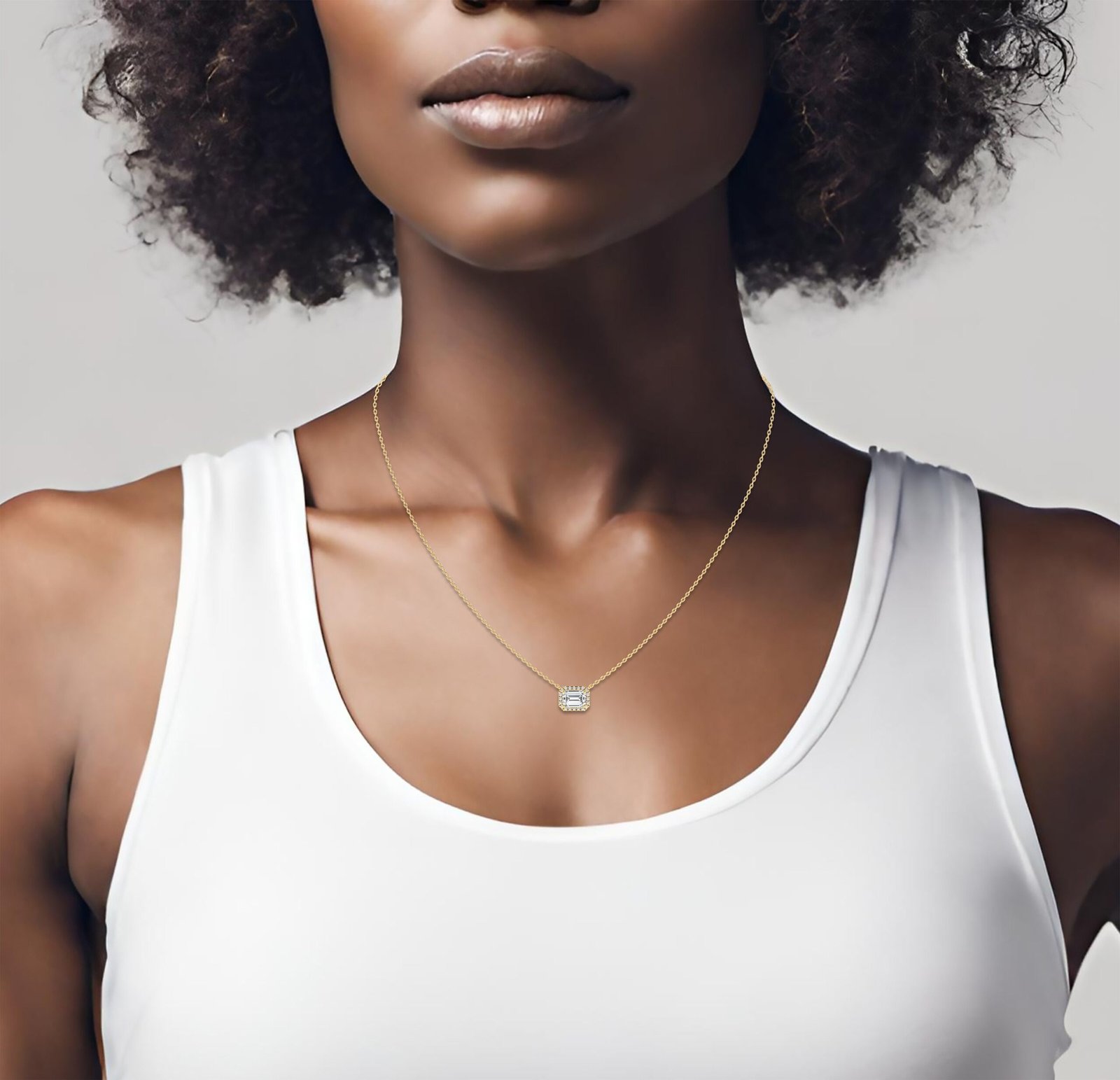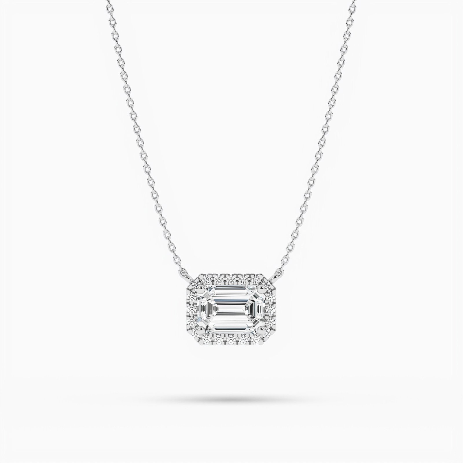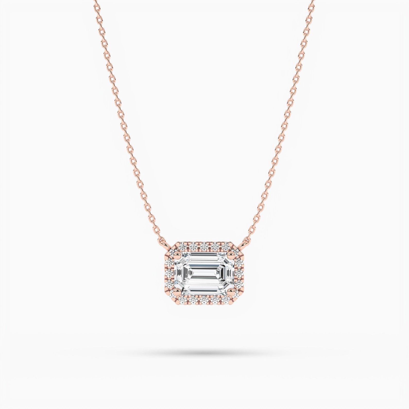 18K Solid Gold Lab Grown Diamond Emerald Cut Halo Necklace – Minimalist Gift for Women