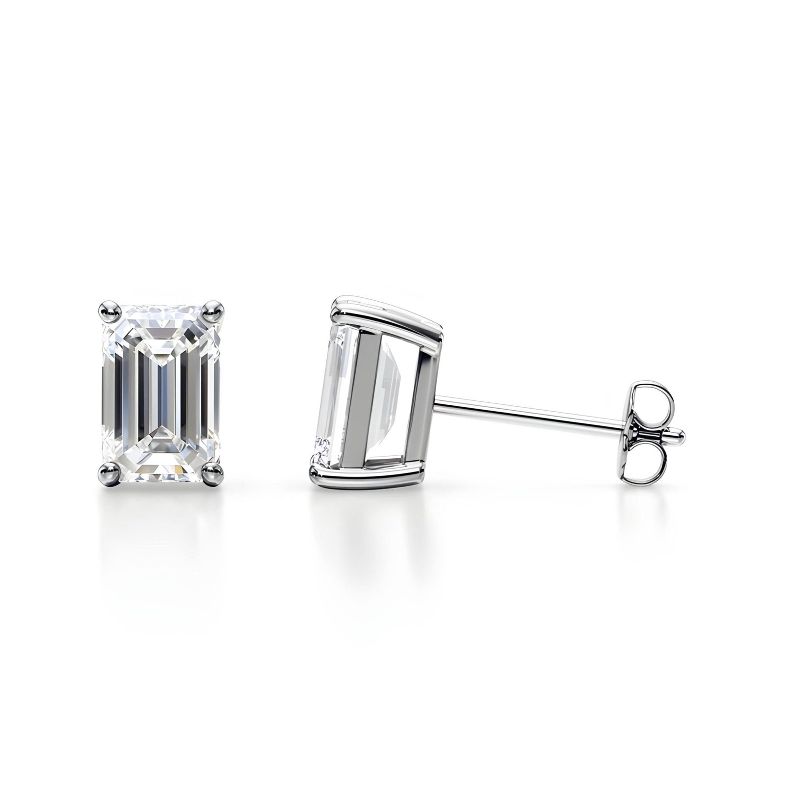18K Solid Gold Lab Grown Diamond Emerald-Cut Stud Earrings