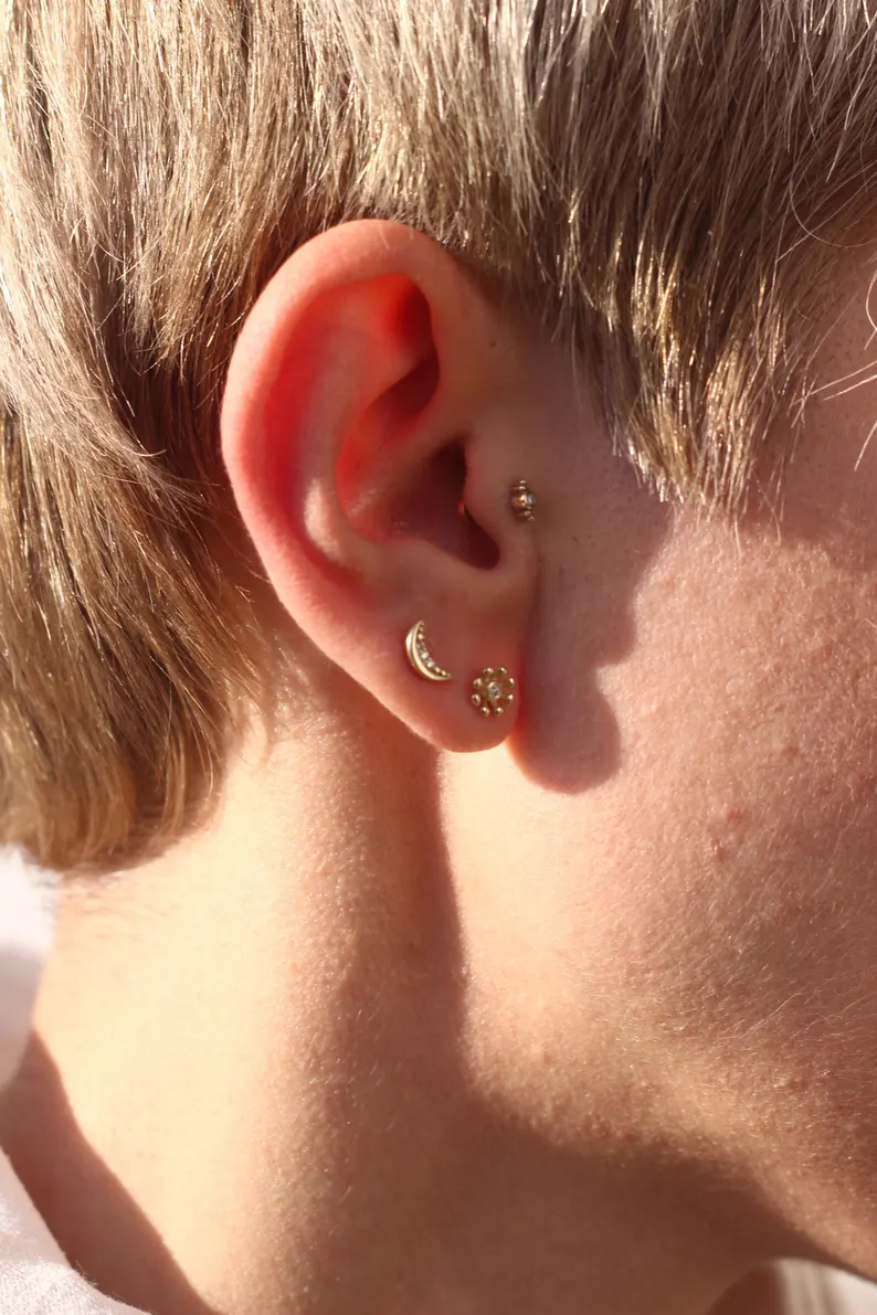 Crafted in luxurious 18K solid gold, the stud showcases diamonds with E color and VS1 clarity, offering brilliant shine in an ethical, eco-conscious design. With a total carat weight of 0.03 ct approx., it’s a perfect minimalistic accessory for everyday elegance or curated ear stacks.