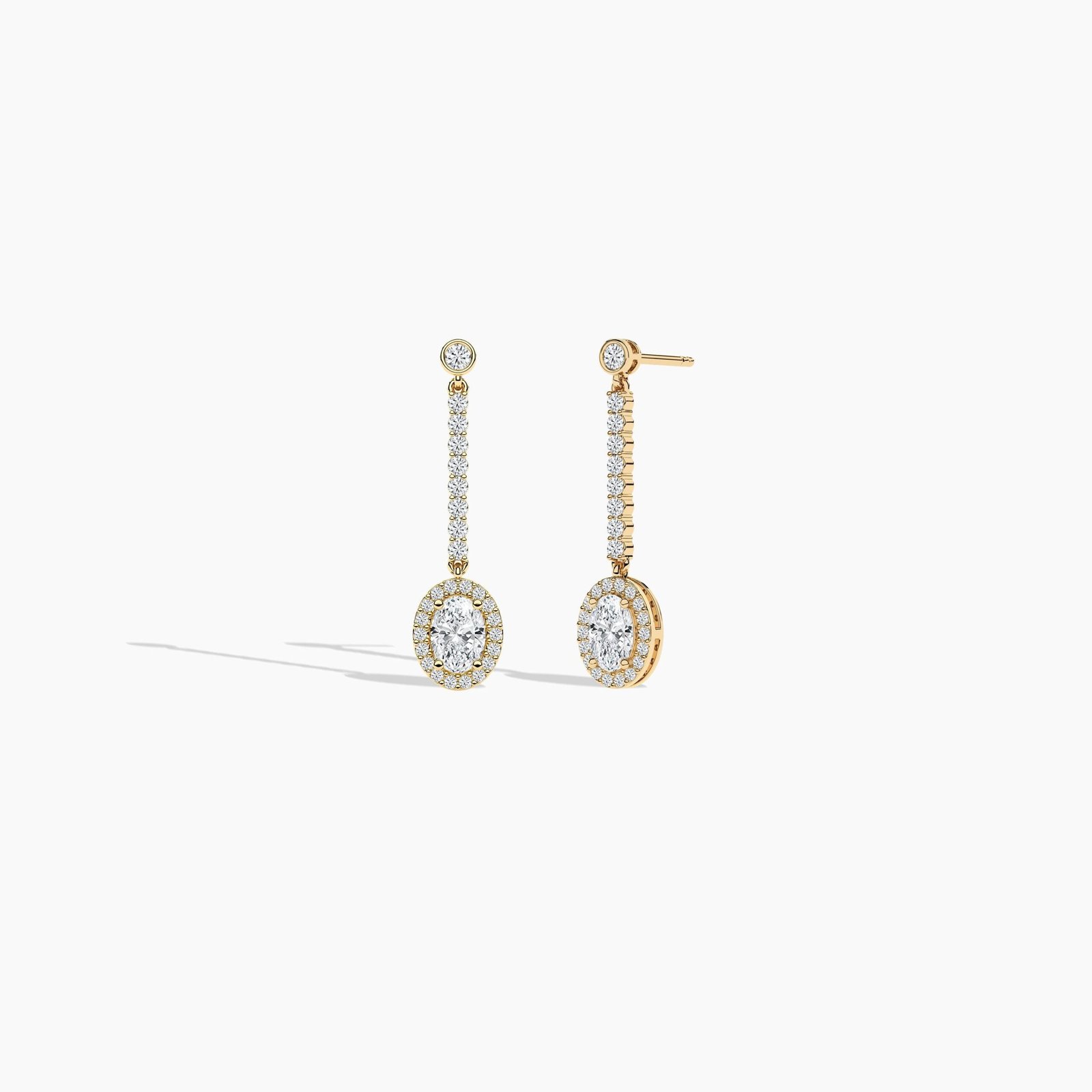 Elegant 18K Gold Halo Earrings featuring oval-cut centers and 54 Lab Grown diamonds (2.30 ct). IGI certified, timeless brilliance.